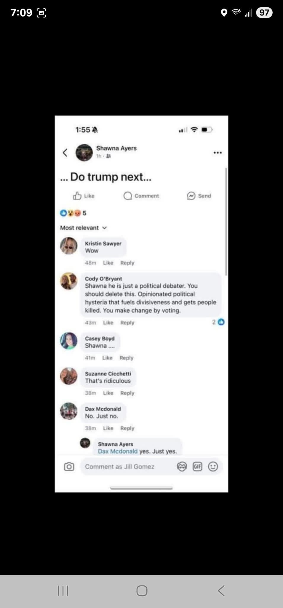 Shawna Ayers is a disgusting human being. Applauding death and encouraging more is horrible.