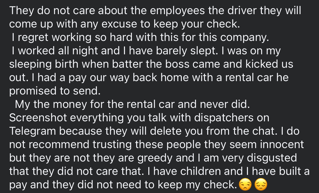 No pierdas el tiempo trabajando para ABA CARRIERS. Trabaje para ellos y te puedo decir que no se lo recomiendo a nadie, investigando un poco me di cuenta de que lo mismo que pase yo también le ha pasado a otras personas con la misma compañía(aquí les muestro). Crees que harás buenas millas en esta compañía? Pues no no la haras porque esta compañía no tiene buenas relaciones con las grandes compañías de Estadls Unidos. Es por eso que tampoco ganarás mucho dinero y lo poco que ganes siempre buscarán una escusa para quitarte un... read more