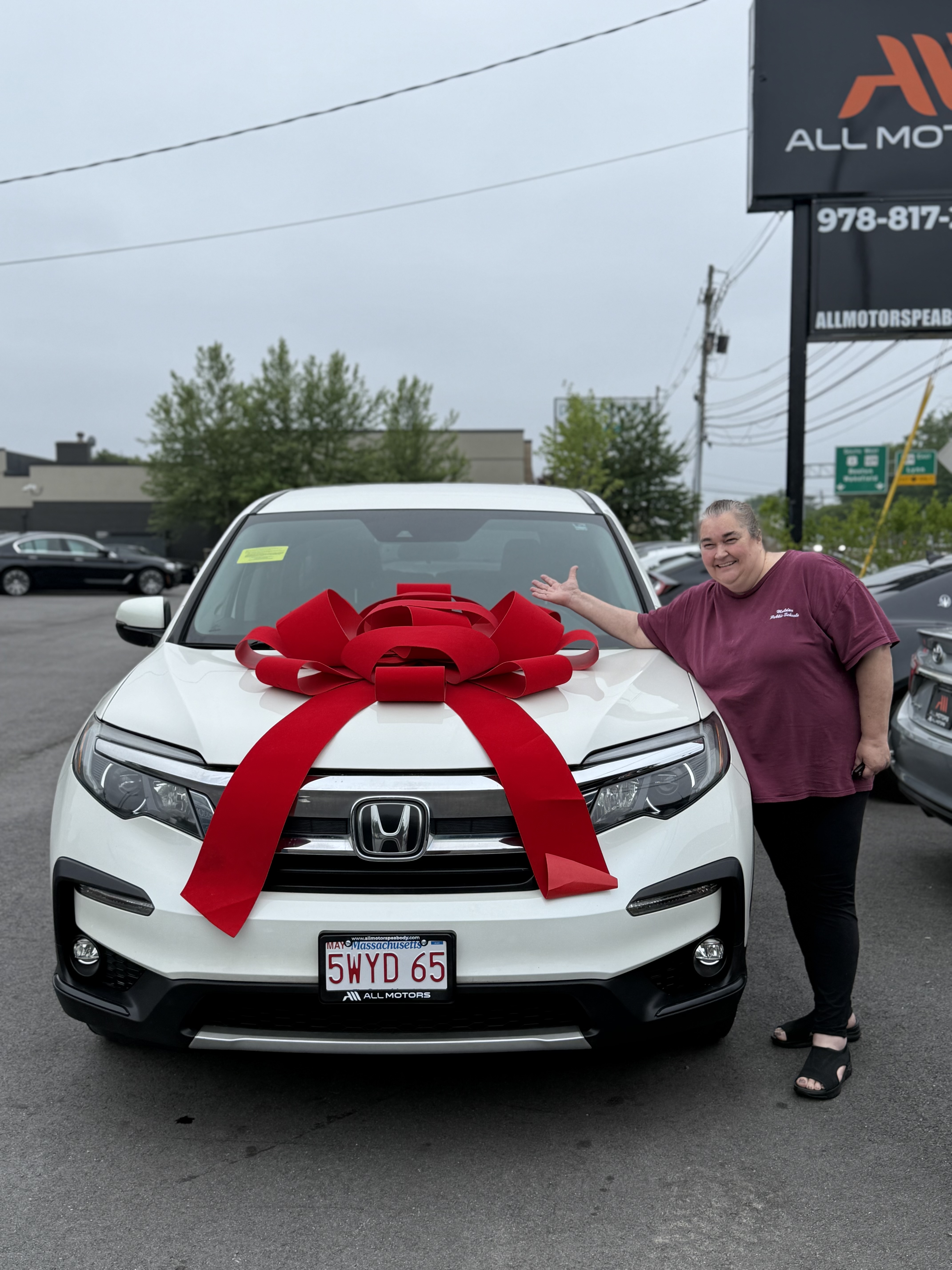 Love love love my 2019 Honda Pilot I had the best experience at all motors in Peabody. My son bought a his first then I bought mine . Sam helped both of us such a great guy. I would definitely recommend this place