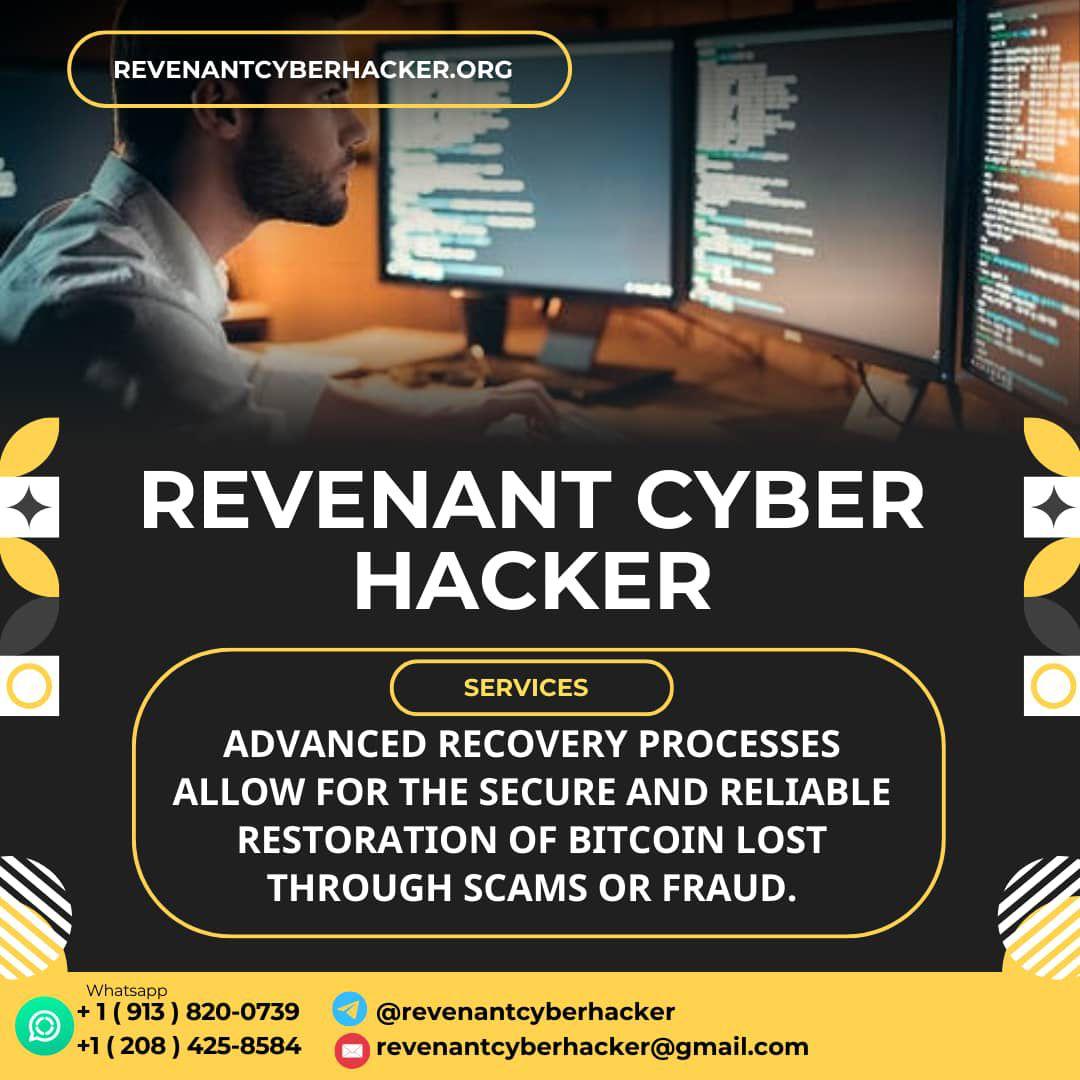 BEST RECOVERY EXPERTS FOR BITCOIN, CRYPTO, USDT RECOVERY / REVENANT CYBER HACKER I want to say a Big thanks to REVENANT CYBER HACKER from the depth of my heart, I have been through hell and storm all in the hands of brokers and fake recovery agents spreading themselves all over the internet, I got rescued by ( REVENANT CYBER HACKER ) immediately I contacted them they responds of which I did and my funds got recovered within 24 hours, all thanks to REVENANT CYBER HACKER, have never seen an honest and understanding recovery... read more