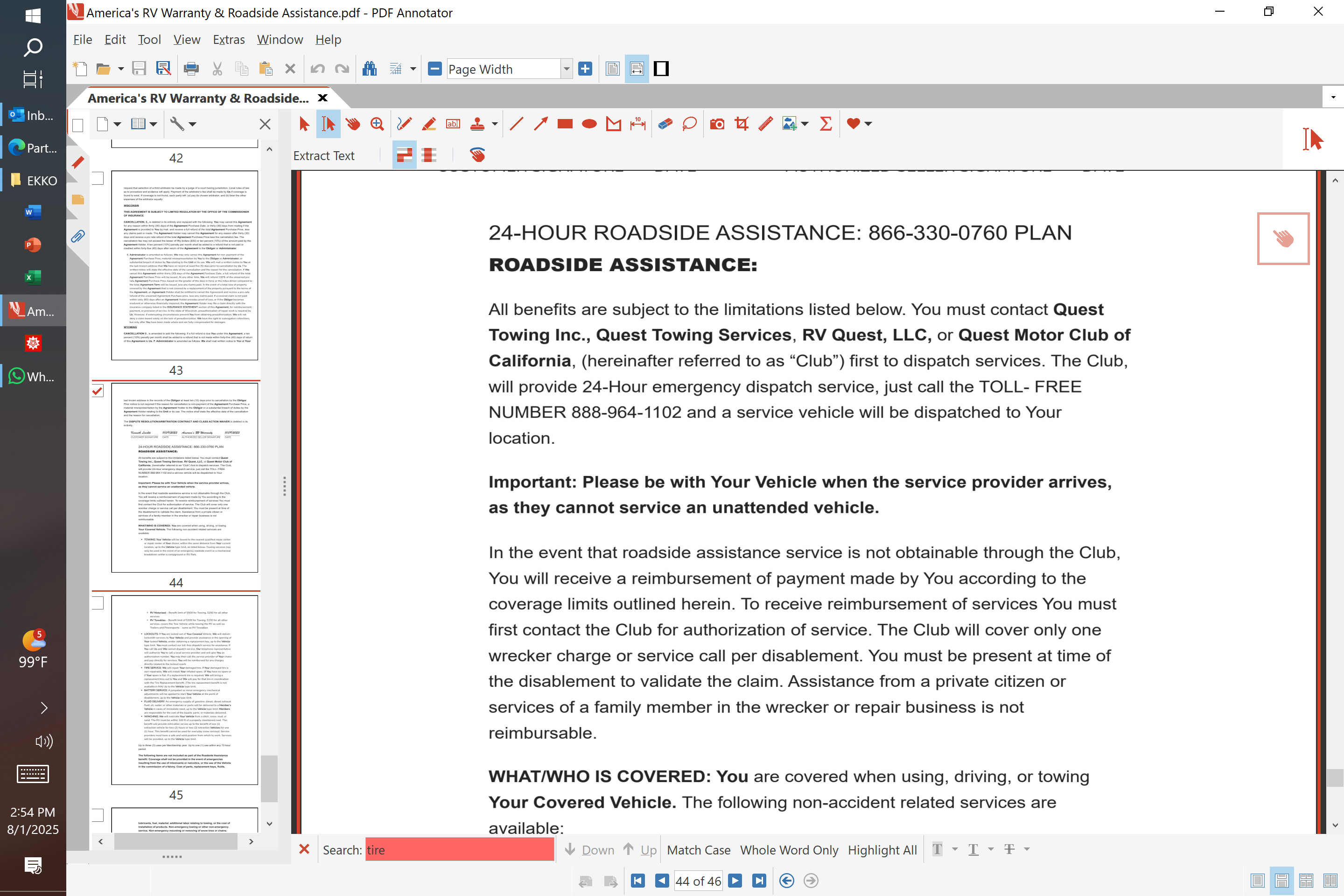 We have the roadside assistance program that ARW offers in addition to their primary vehicle warranty product. Based on our experience, I would steer clear of this option. We were returning home to Austin from west Texas, when our motorhome began to vibrate strongly at 45 mph. We called the number we'd been given, but it went to our ARW representative Forest, who signed us up. We tried several times, but not even a call back. We limped into Fort Stockton and found a tire shop that diagnosed tread separation in both front tir... read more