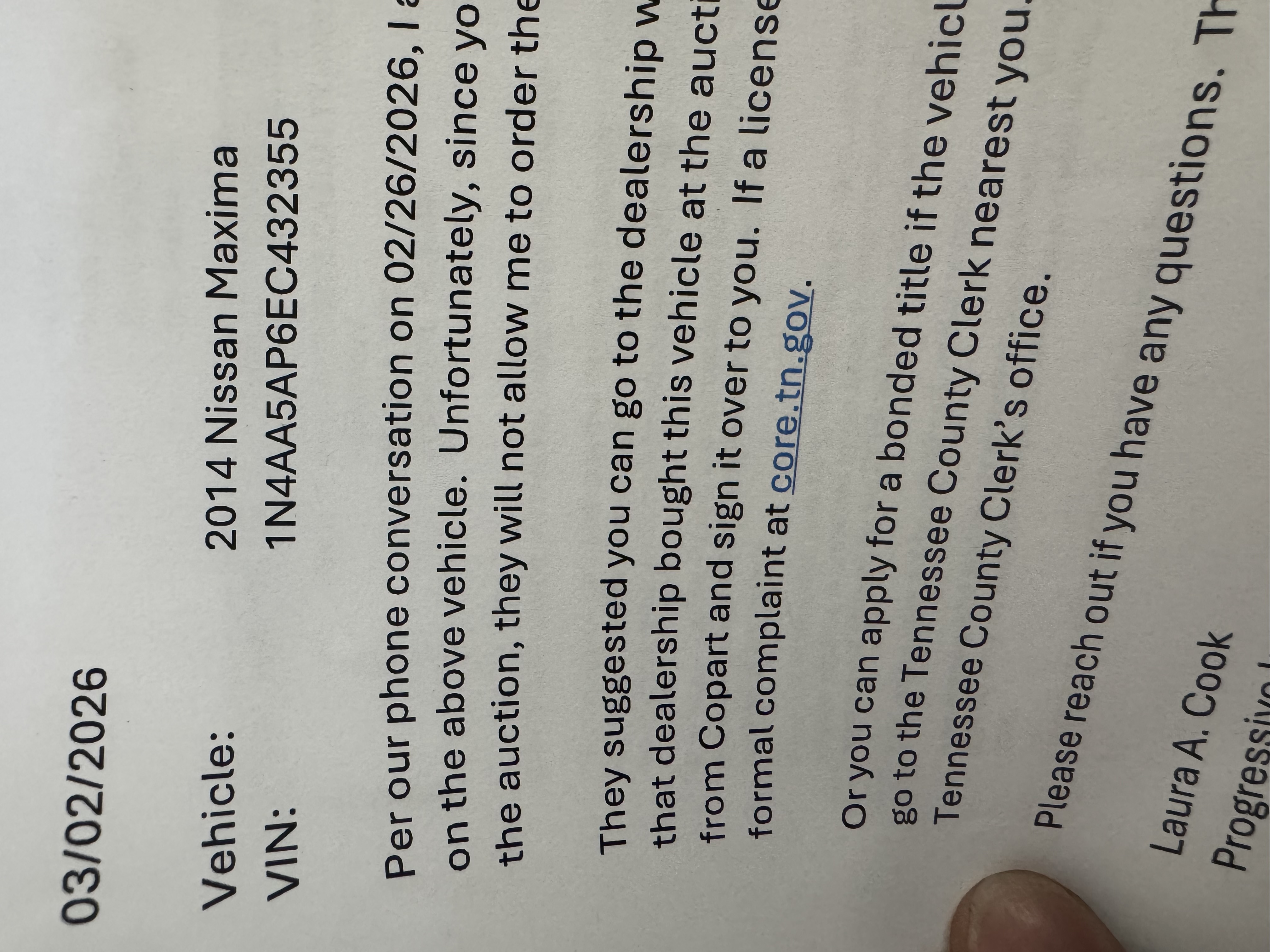 Hey I’m calling about a car that was purchased from you guys I can’t get the title 7316937857 please give me a call