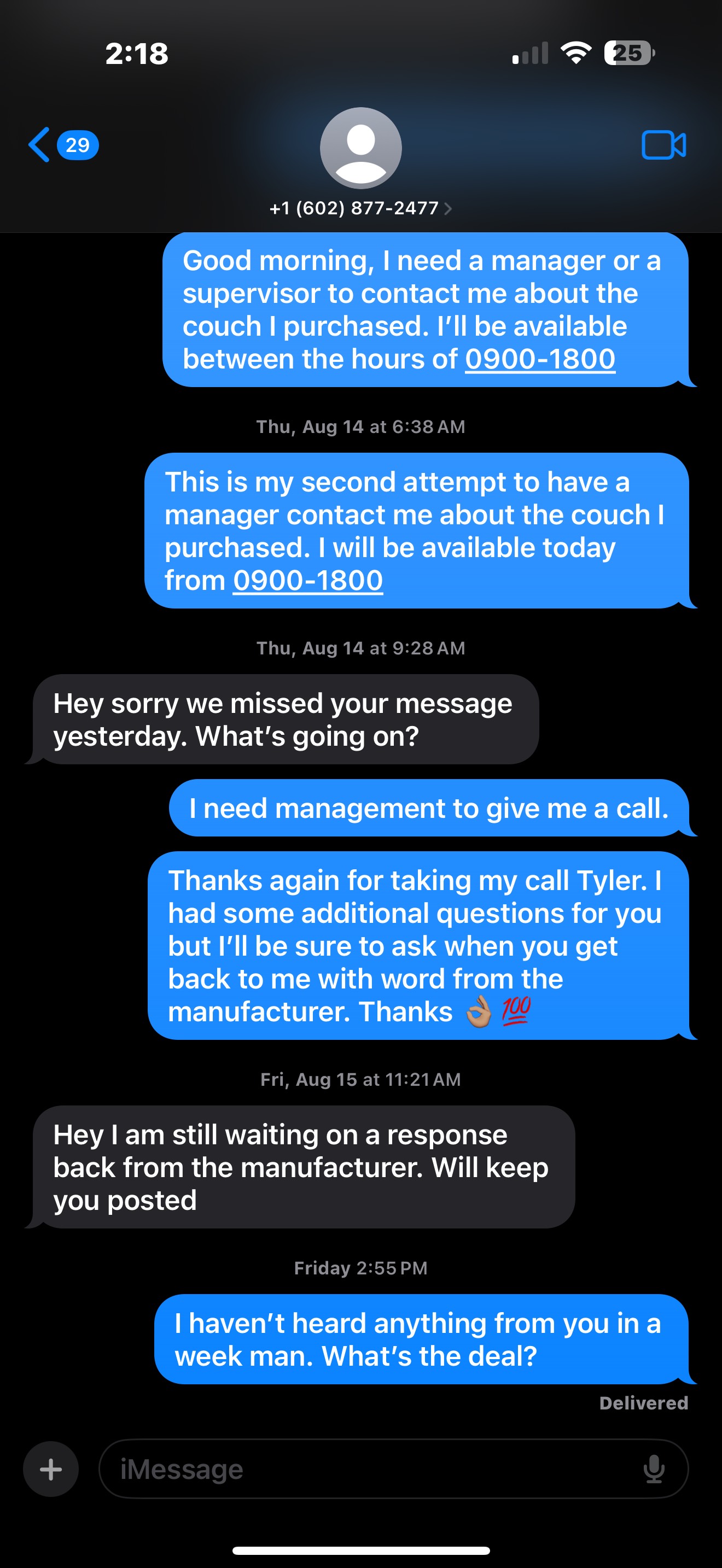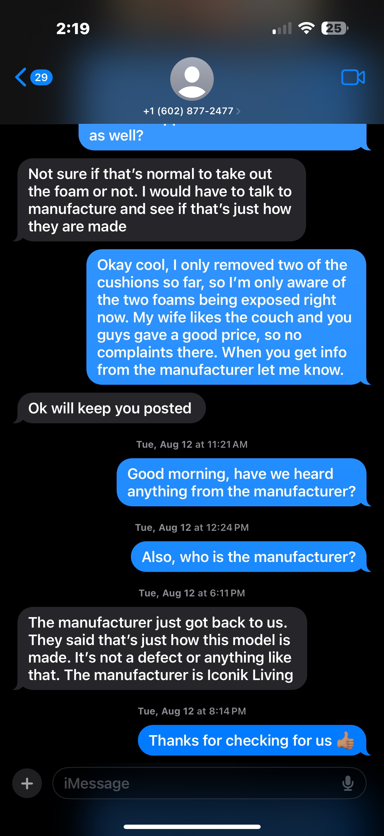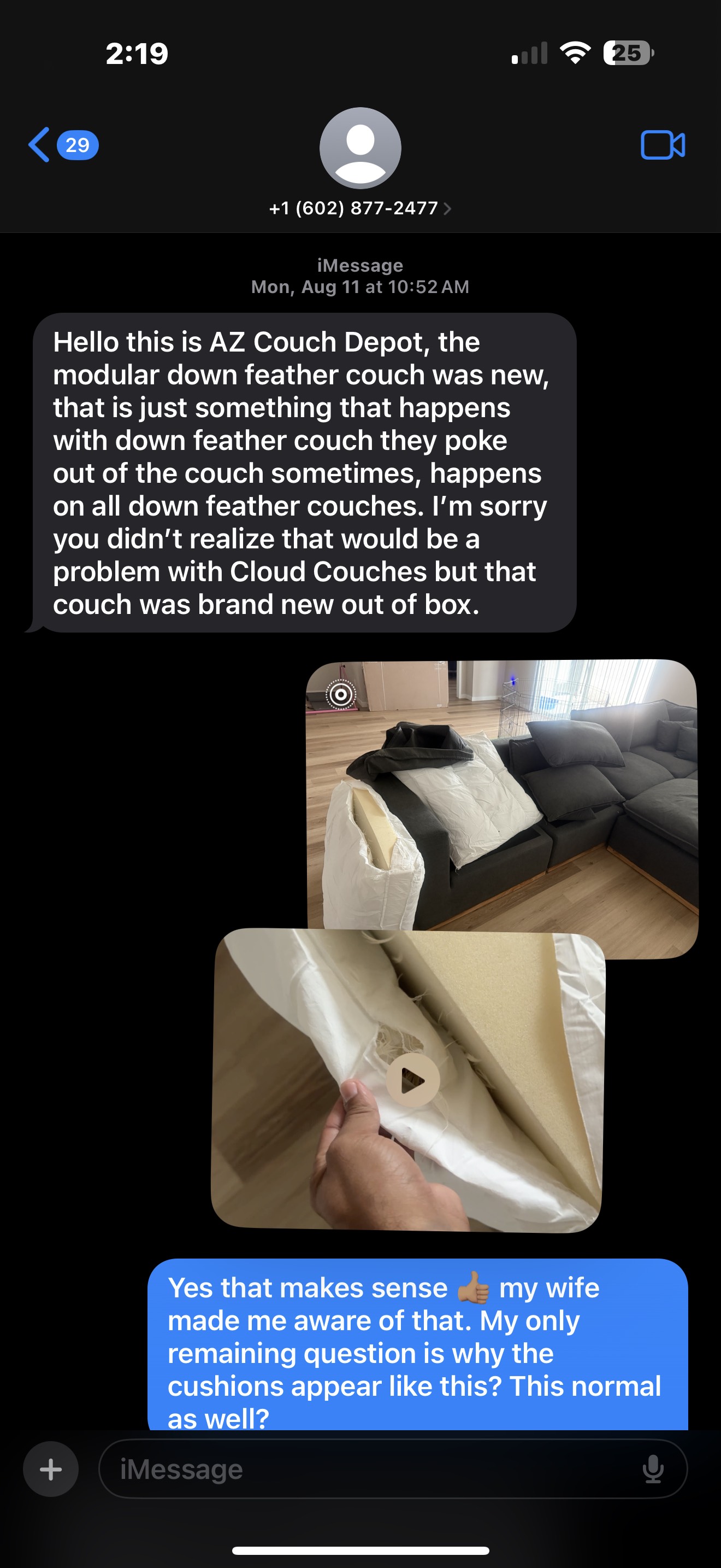 My wife and I purchased a couch advertised as new from AZ Couch Depot in August 2025. We were very unimpressed by their facilities and used inventory, most of which had stains and a noticeable odor. Completely turned off by their used inventory their sales rep Josh Gliniak showed us a couch that was advertised as BRAND NEW, carrying a decent price tag. Since their used inventory was insufferable we thought going with the new couch was the way. We were ensured the couch was brand new, only unpackaged to be placed on display. ... read more
