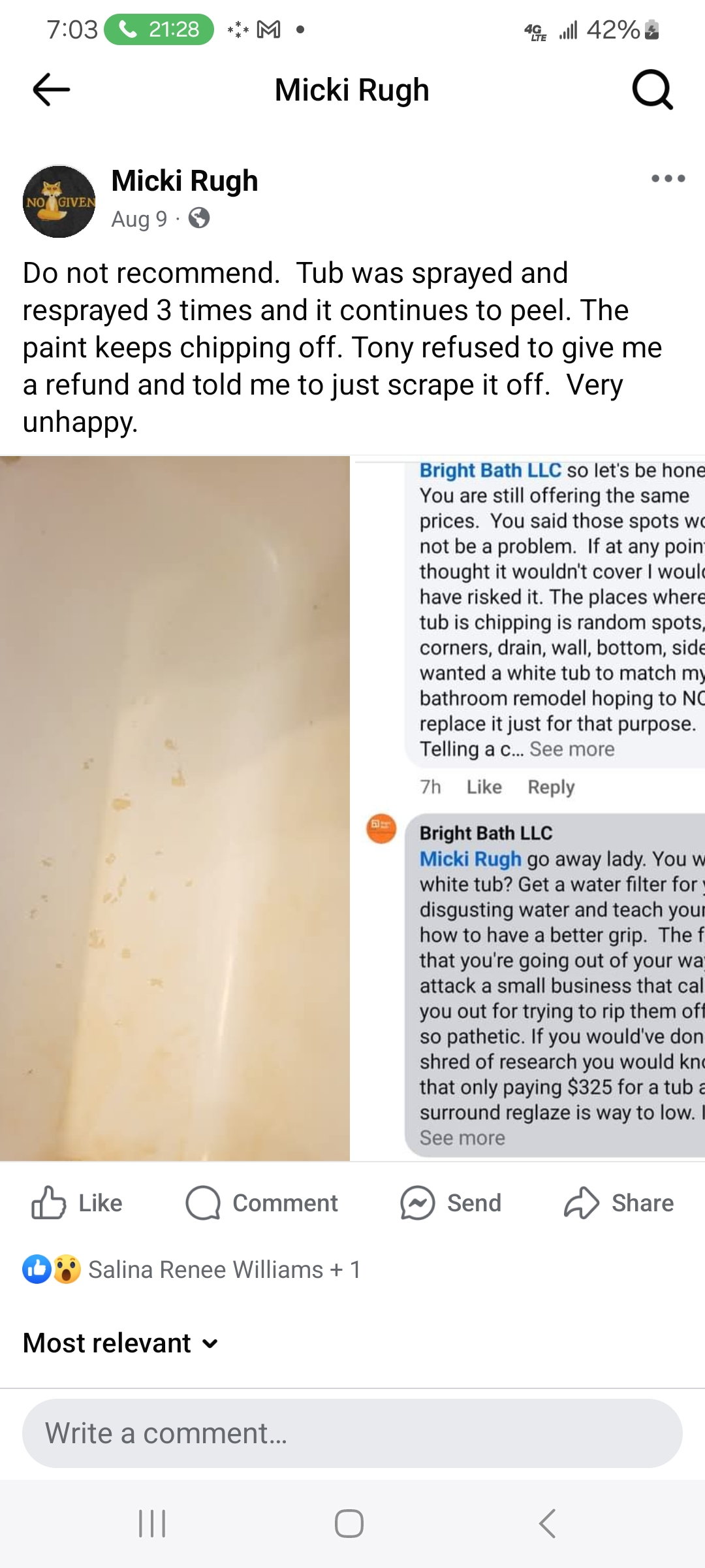Do not recommend! My tub was sprayed 4 times and continued to peel. I asked for a refund and was denied. I gave a fb review and was was personally attacked by the owner and blocked. Horrible and unprofessional behavior.