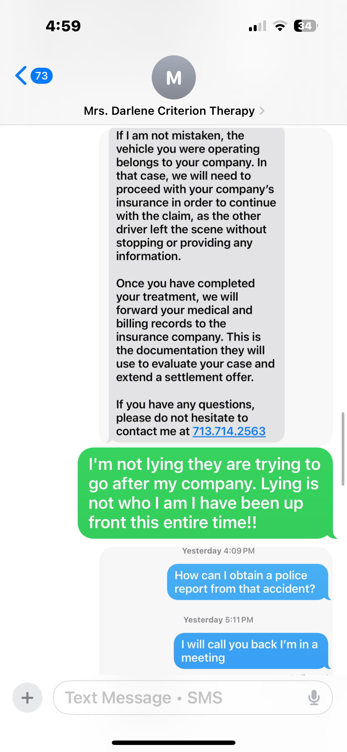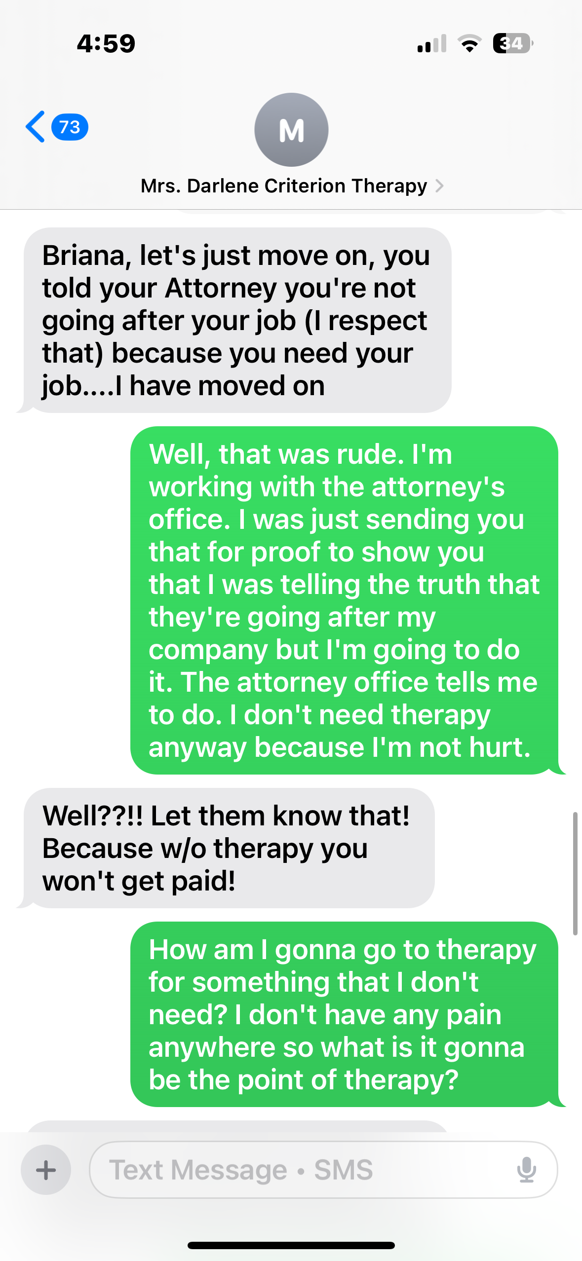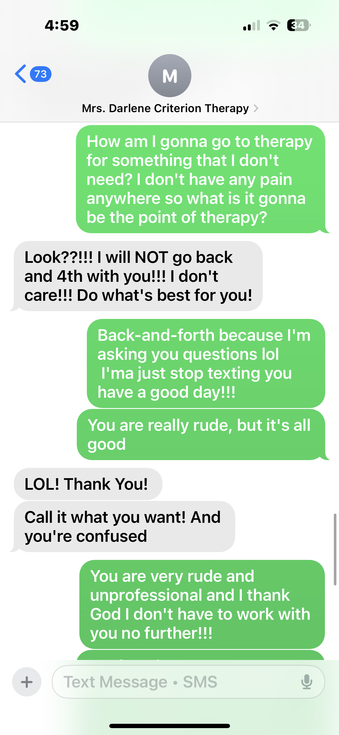 I was working with Miss Darlene unfortunately things went left. Miss Darlene is very rude and unprofessional, and I have uploaded proof.!! The Doctor and the staff were very respectable and very professional at the therapy center!!!