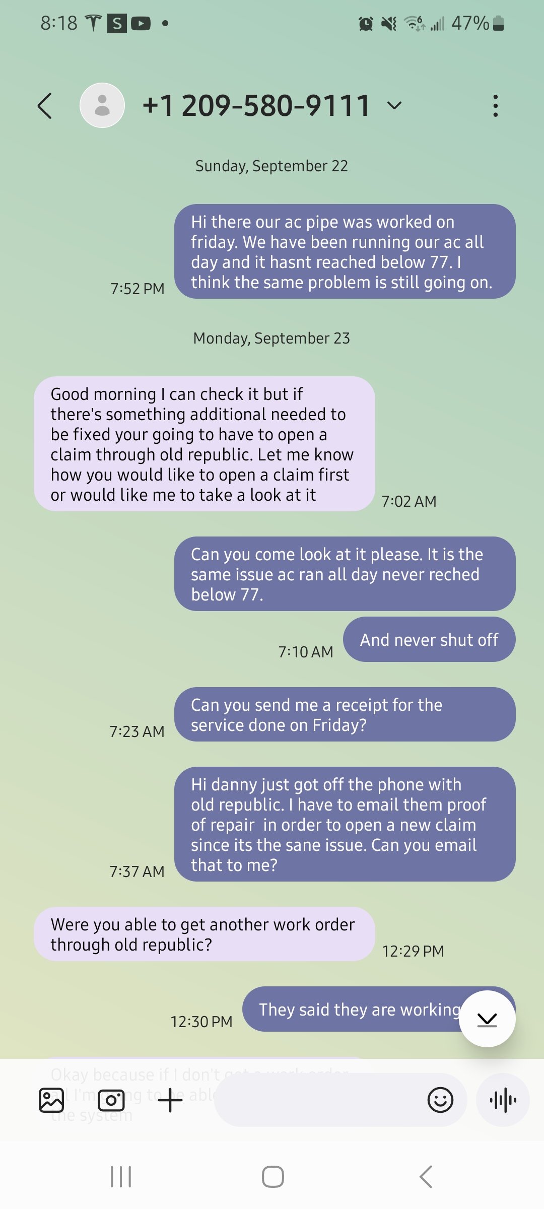 Dani came out to "fix" our ac unit in September. His diagnosis was a leak in a pipe, after paying almost 2,000 the ac until had the same problem. I reached out and he told me he needed another workorder order, in other words he wanted to get paid again after misdiagnosing the problem. This guy is a rip off and does not know what he is doing.