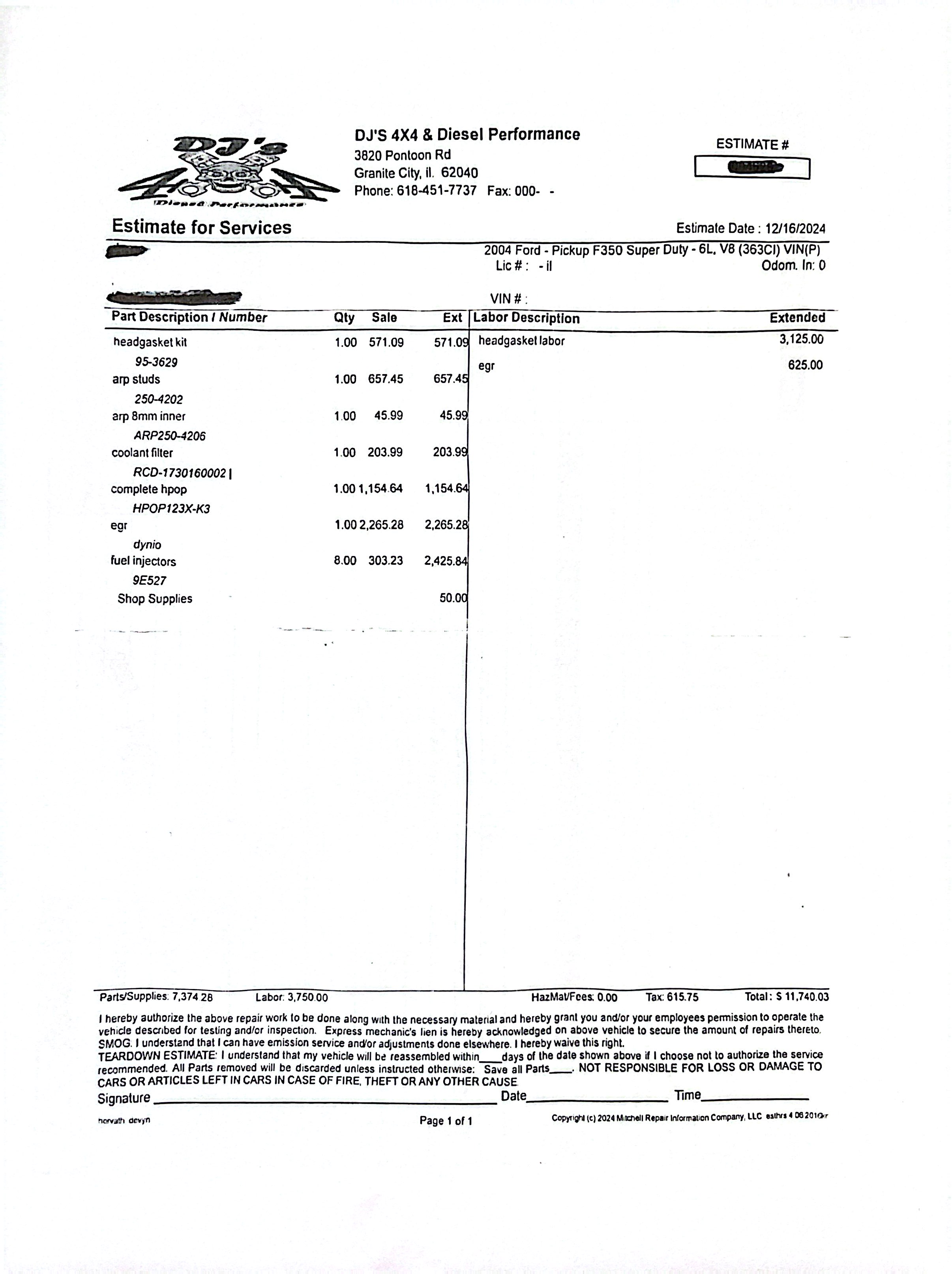 BEWARE!!!!!!! Don’t take the risk. Once you hand over the cash, it’s all over. I'll give DJ and his shop zero stars but it won't let me. I interviewed three shops in the Madison County area to "bulletproof" my 2004 F250 pickup. I chose DJ because he talked a good game. "I cut my teeth on these types of overhauls," he said. “My business was made from working on the 6.0 diesel”. Great, I need the work done right because I'm hauling a loaded trailer with my precious family 3,xxx miles in the next two months and we need reliabi... read more