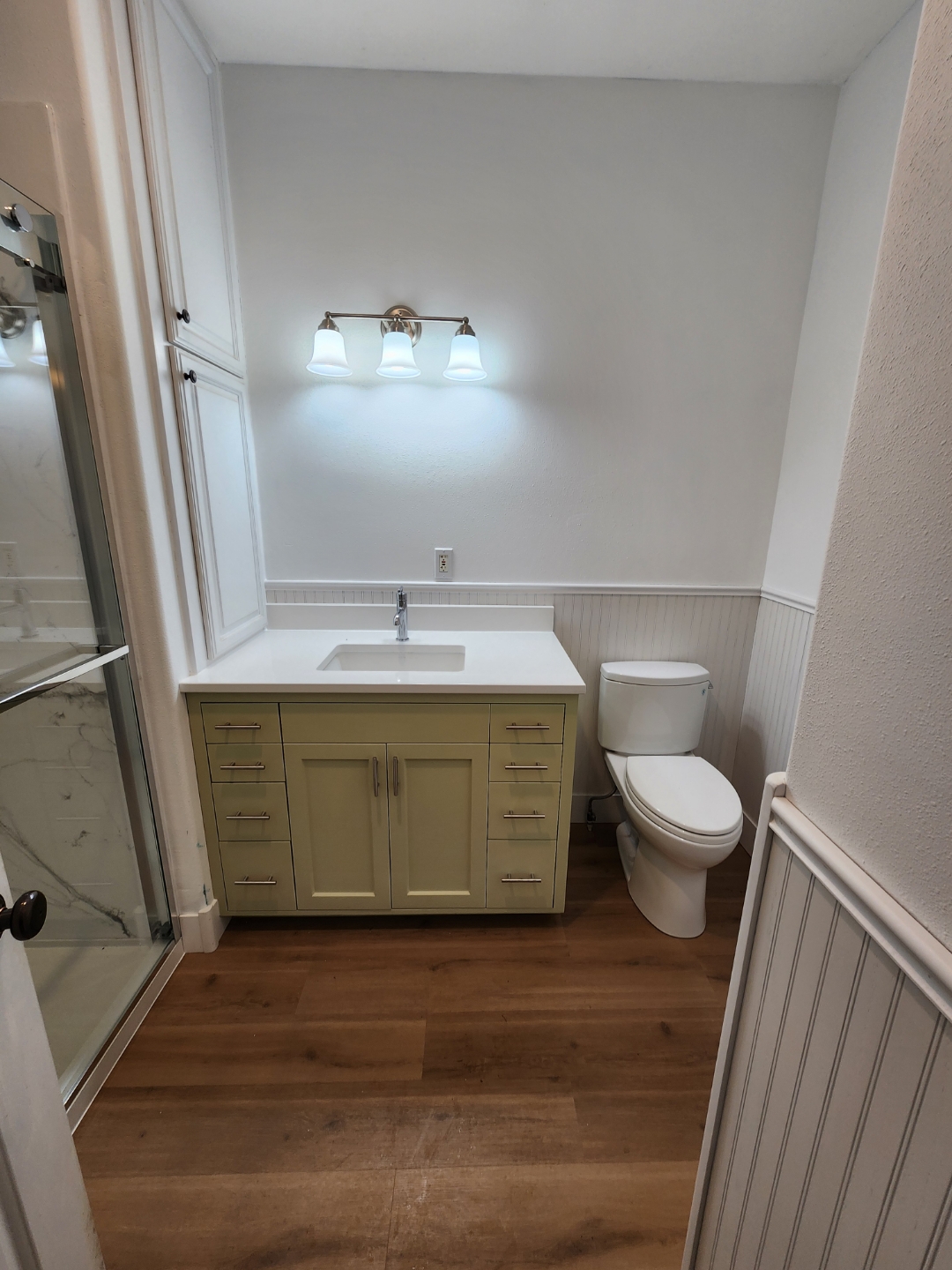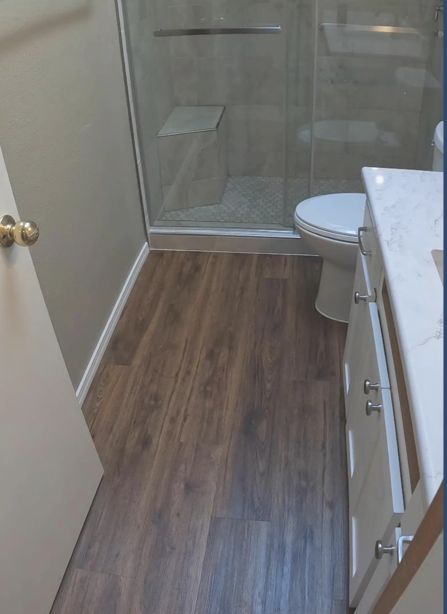 Custom Cabinets, shower panels, trim and baseboard.