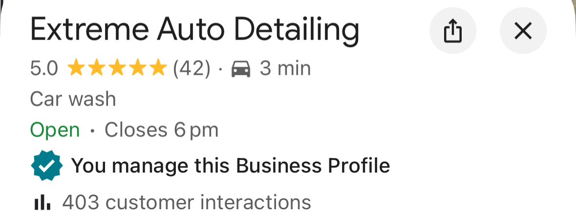 Extreme Auto Detailing has a 4.8 star rating with 50 reviews.