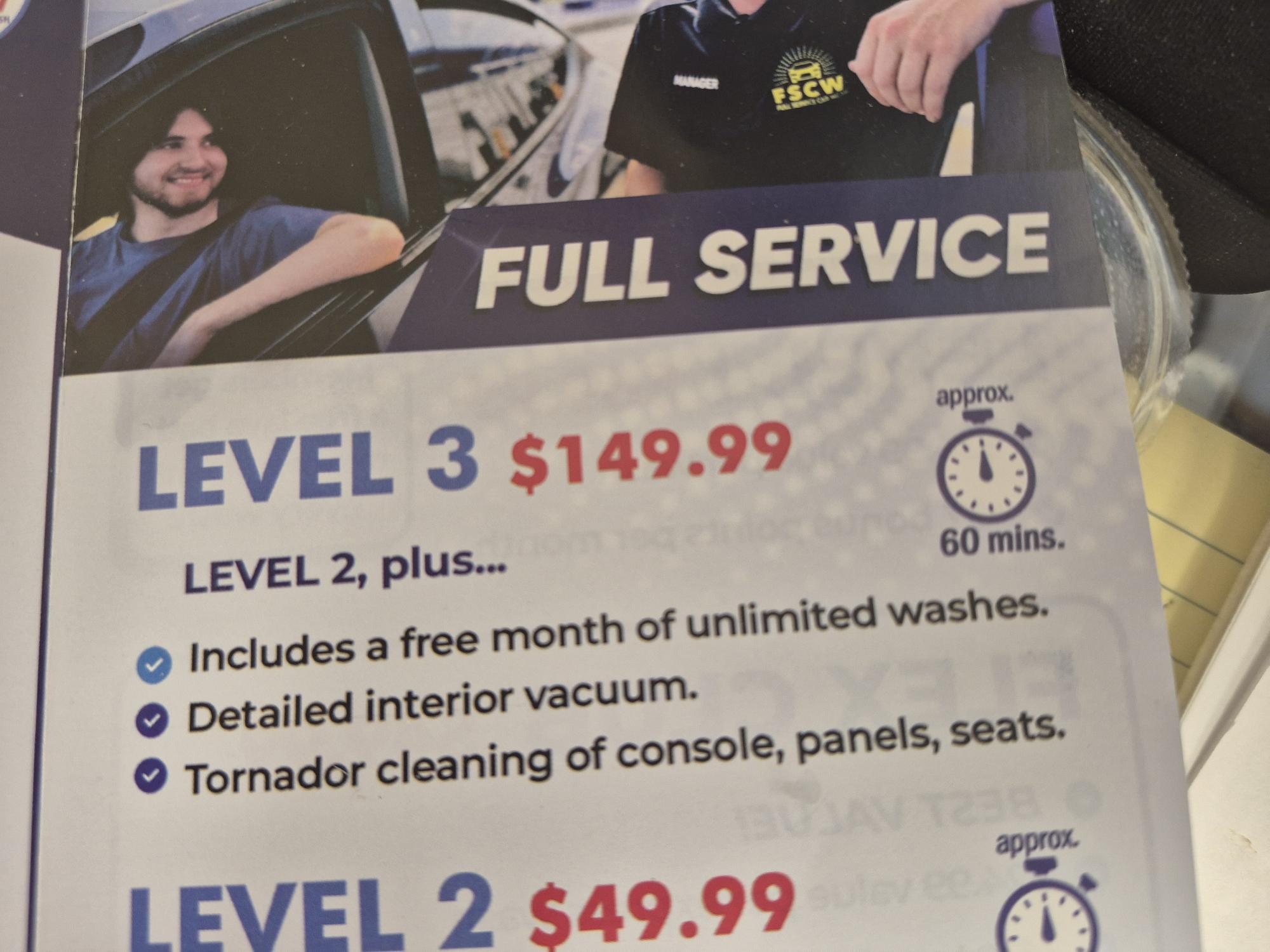 I had an 11:30 appointment today and arrived before that time. I went to the man in the kiosk and told him I had an appointment for 11:30. He told me to go through the car wash and that they would meet me on the other side. I did this and informed them that I was leaving the car with them and walking across the street for a haircut. The pamphlet stated approximately 60 minutes for the service. I received a text at 12:30 saying they were finishing up and would call me when done. I walked back to the FSCW location and waited.... read more