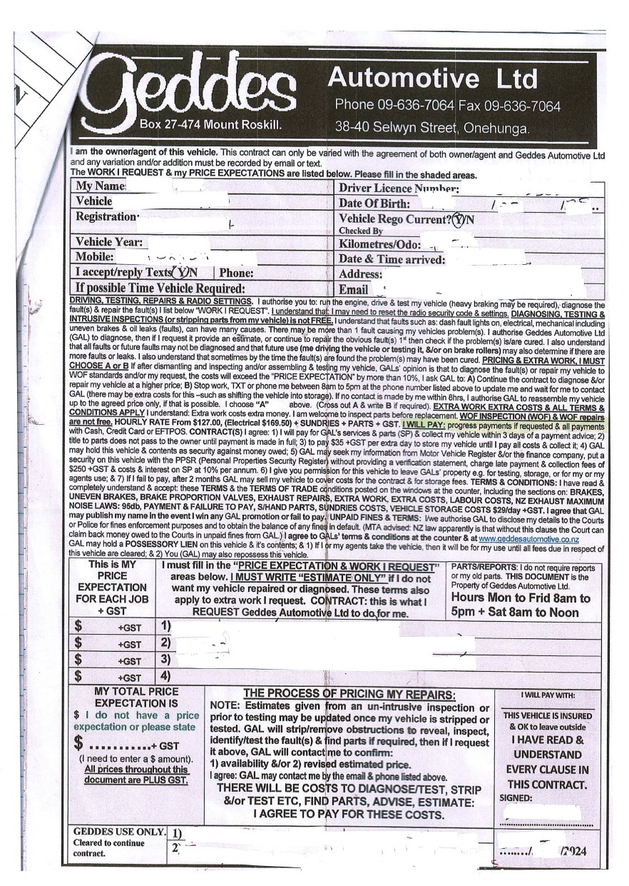 DONT EVER SIGN HIS WORK REQUEST DONT EVER TAKE YOUR CAR HERE, READ HIS REVIEWS ON TRUST PILOT AND GOOGLE YOU WILL THANK US LATER. What Peter Geddes does, he gives you a low price over the phone to get you in the door, then gets you to sign his workshop form, doesn't give you a copy, denies anything that's not through his message system that you have to keep paying extra for. He doesn't give you a copy of the “work document” which if you read the fine print is actually a contract! This is exceptionally sneaky and deceptiv... read more