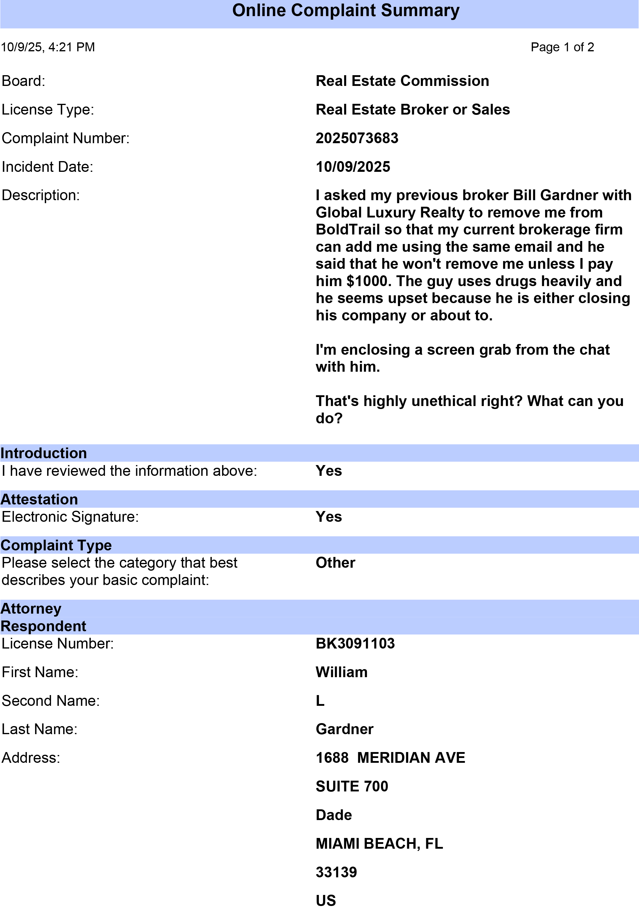 I used to work with Global Luxury Realty for a few years and always found William Gardner, its Broker, a person with a lack of class, honor and general decency. After a few months being sort of inactive I wanted to check back with him and the 1st thing I noticed is that their websites are not longer up so that was not a good indication at all. After I spoke to him he made it clear that he didn't care for me so I decided to move on and fond myself a new respectable Brokerage firm and I started working for DaltonWade at a ful... read more