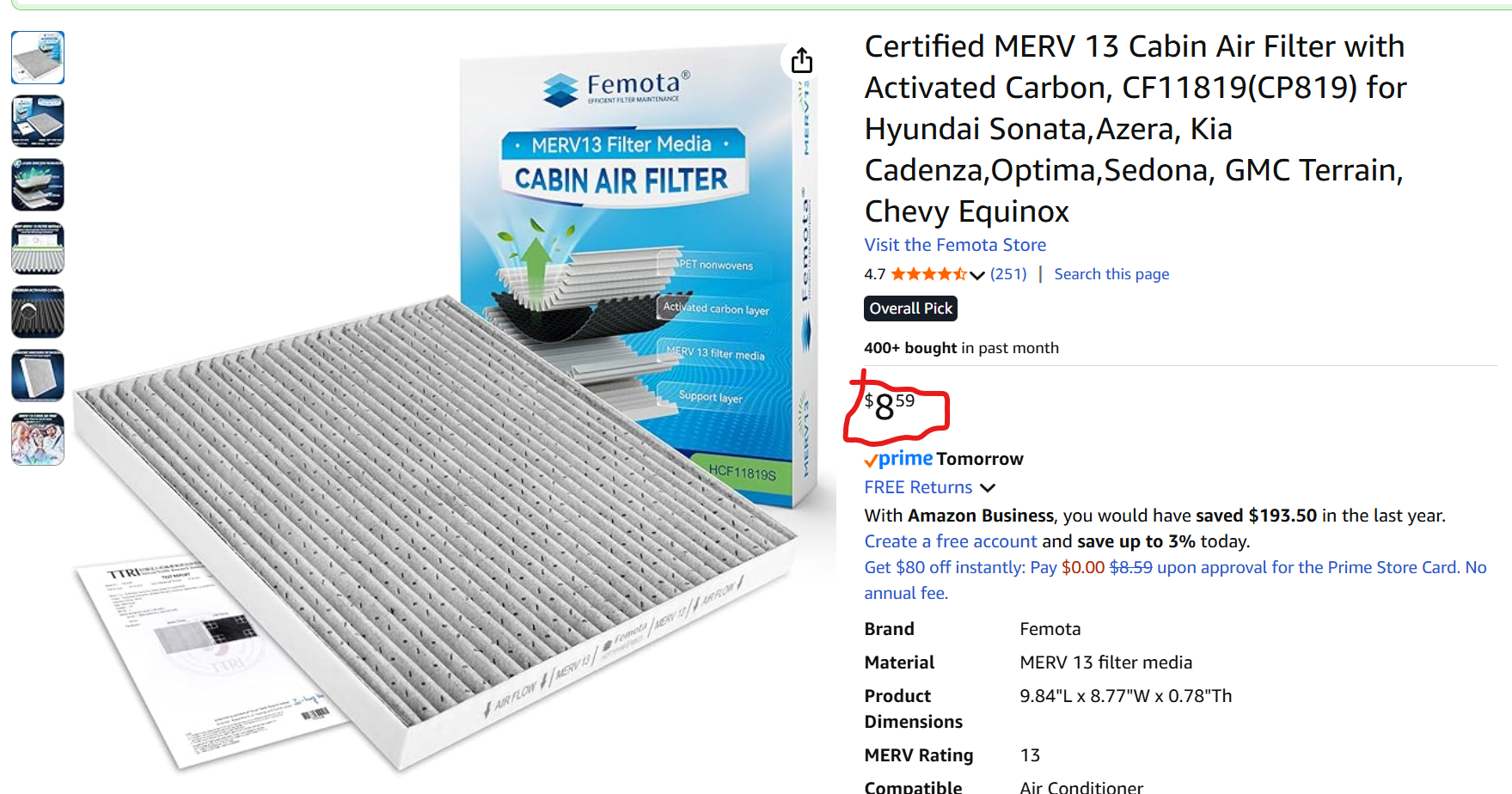 Took my car there for an oil change. They told me the 'cabin air filter' was very dirty, it was. I told them go ahead and replace it. Then they charged me $49 for it. That was 20 minutes ago, 09/09/2025. I just checked the price on Amazon and it was $8.59. I won't be back.