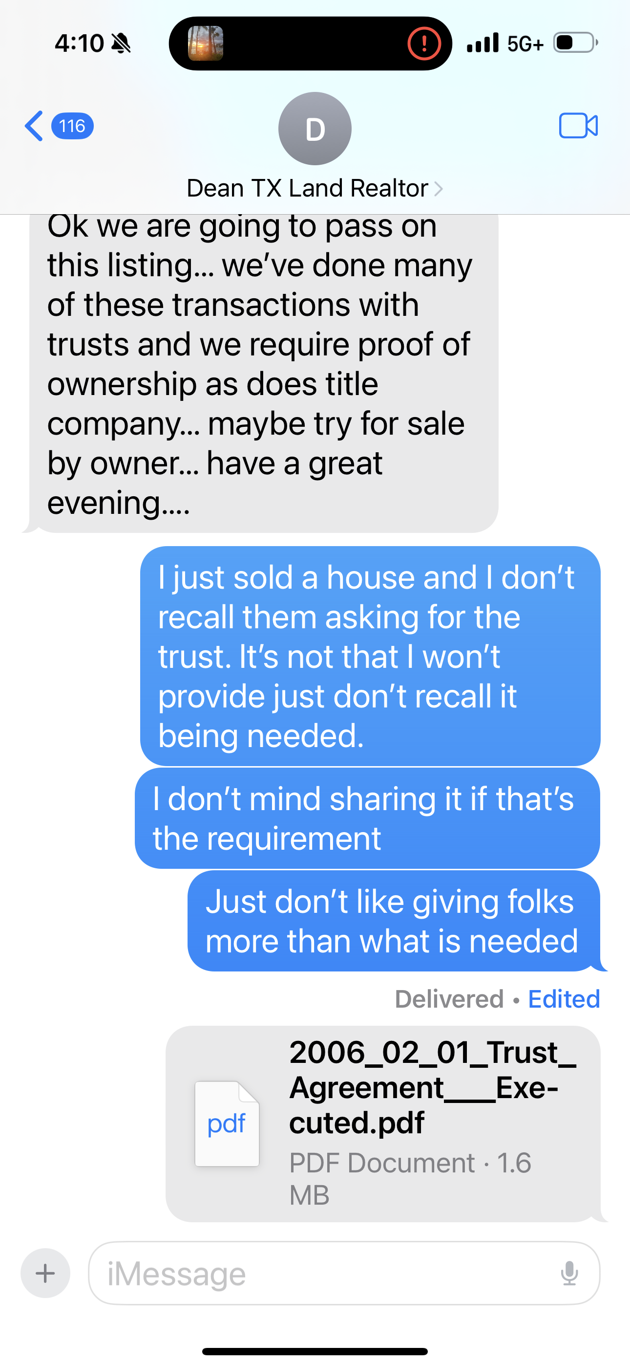 Dean’s conduct was unprofessional. I have a trust and recently went through a similar process when selling a home. He requested a copy of my trust agreement (revocable trust), and I mentioned that I did not recall providing it previously. Instead of clarifying the necessity, he immediately dismissed me for safeguarding my personal identifiable information (PII). I promptly followed up and provided the trust agreement after he stated they would not move forward without it. Now, after I entrusted him with sensitive informatio... read more
