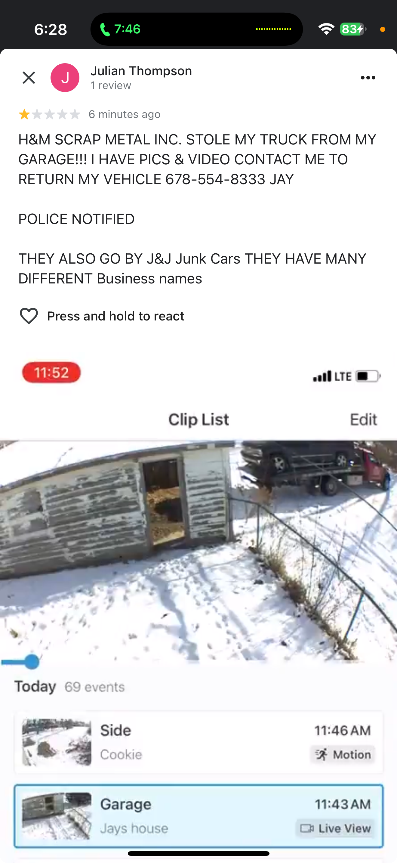 H&M SCRAP METAL INC. STOLE MY TRUCK FROM MY GARAGE!!! I HAVE PICS & VIDEO CONTACT ME TO RETURN MY VEHICLE 678-554-8333 JAY POLICE NOTIFIED THEY ALSO GO BY J&J Junk Cars THEY HAVE MANY DIFFERENT Business names
