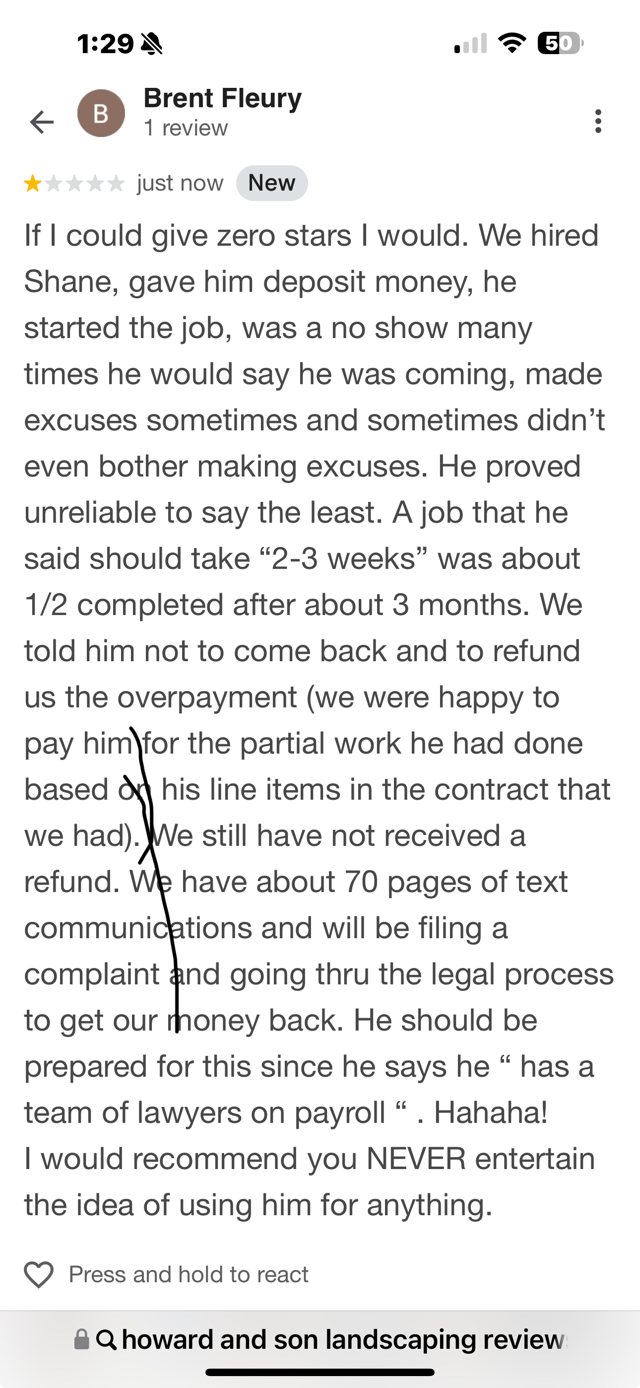 Nothing good to report here. Signed two contracts with Shane for driveways, patio, flower beds, and drainage. One in July 2024 and one in Sept 2024. Paid him 50% deposit. The work on the first contract was started but not completed leaving me with a torn up yard and multiple dirt piles. The second contract was never even started. No refund received for either one. He would communicate frequently at first and then not at all for weeks. I got excuses from "working out of town" to "truck broke down." Not professional b... read more