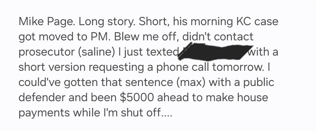 Get directionsPOOR communication with myself, point of contact, and client, my father. Did NOT work with another lawyer that was hired for connecting case. In the little communication we did have, they painted a nice picture of knowing the prosecutor and having an angle. Then the last trial date, the lawyer showed up 3 hours late without informing the client or the prosecutor. The judge was livid, revoked my 72 year old father's probation, and sentenced him to 4 years state. My father's fault for being in that position, but the lawyer too... read more
