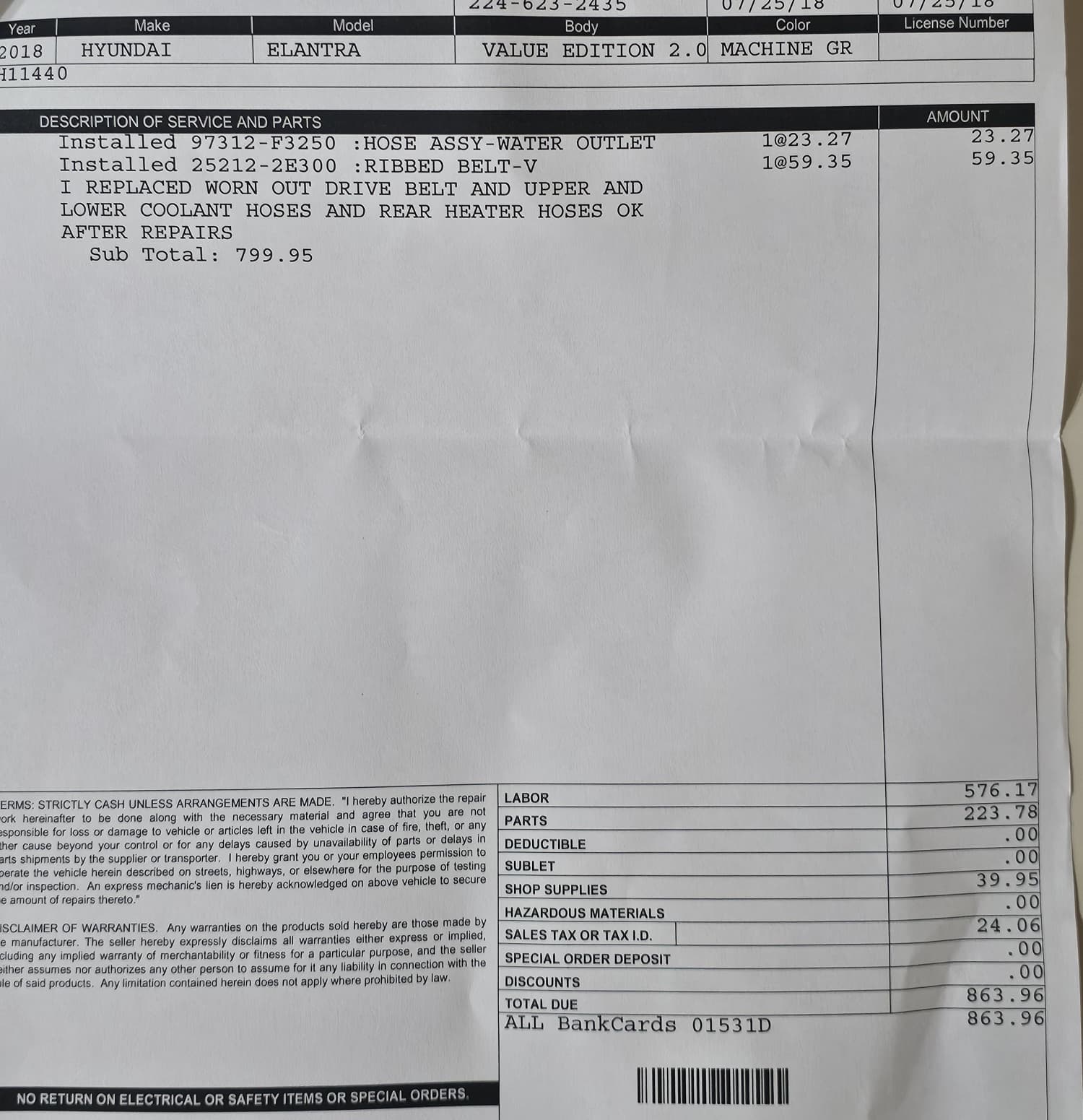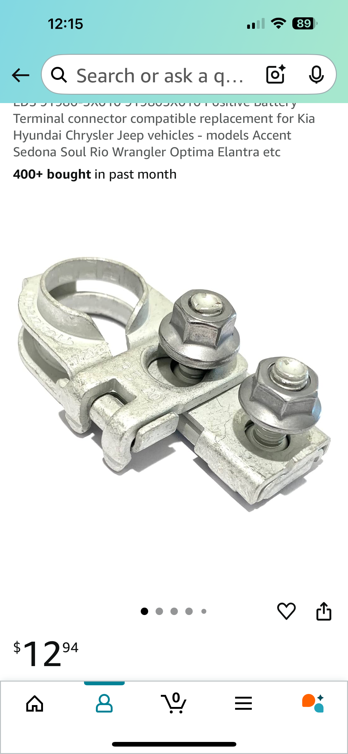 I had my Hyundai ELANTRA towed to the dealership to have the positive terminal clamp shown in picture below replaced and if necessary for the battery to be replaced. They wanted to charge me a diagnostic charge of over $200 and I said that was not necessary as I knew what the problem was. It was the clamp in the picture. Shortly afterwards, I returned a missed call to the service department and they quoted me $1600.. I told them you have to be kidding me and said there was no way I was going to pay $1600 for a $ $13 clamp. I... read more