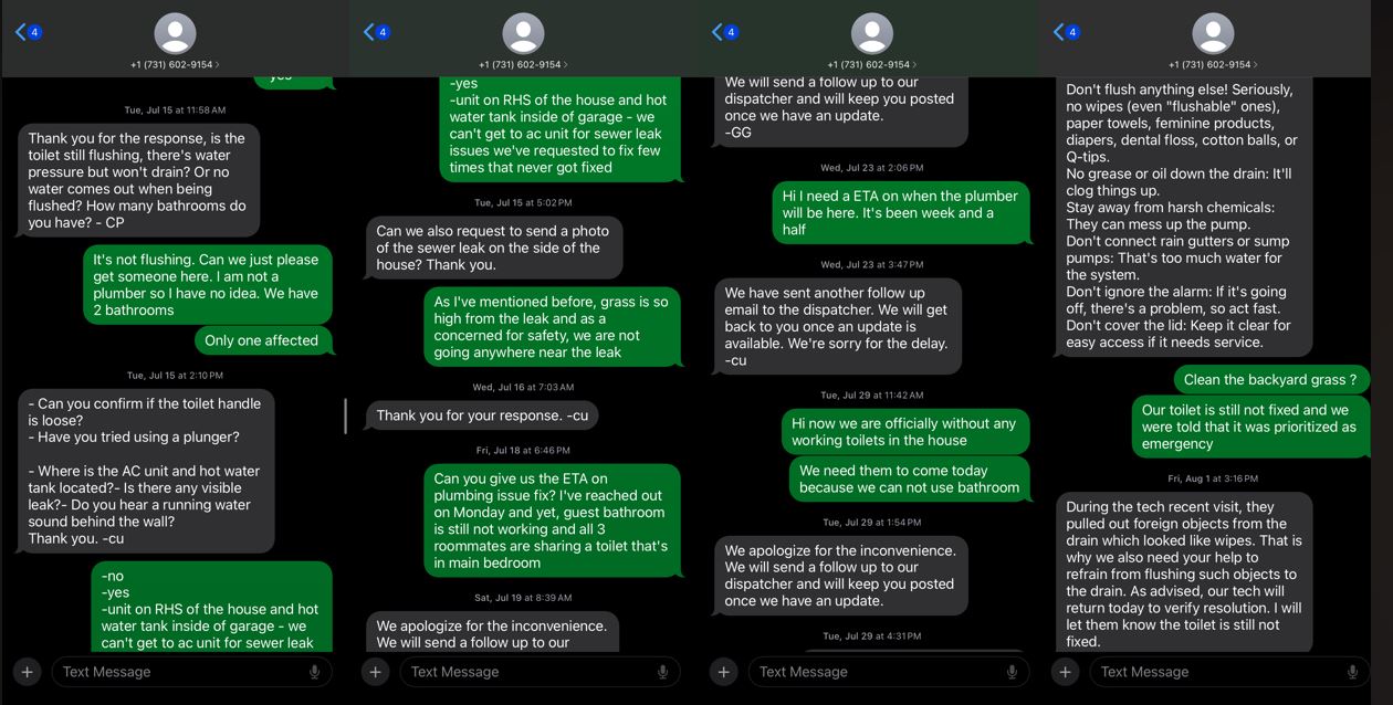 The worst! No working toilet for a month. House smells due to plumbing issue that never get fixed. Waste of $1700 a month.