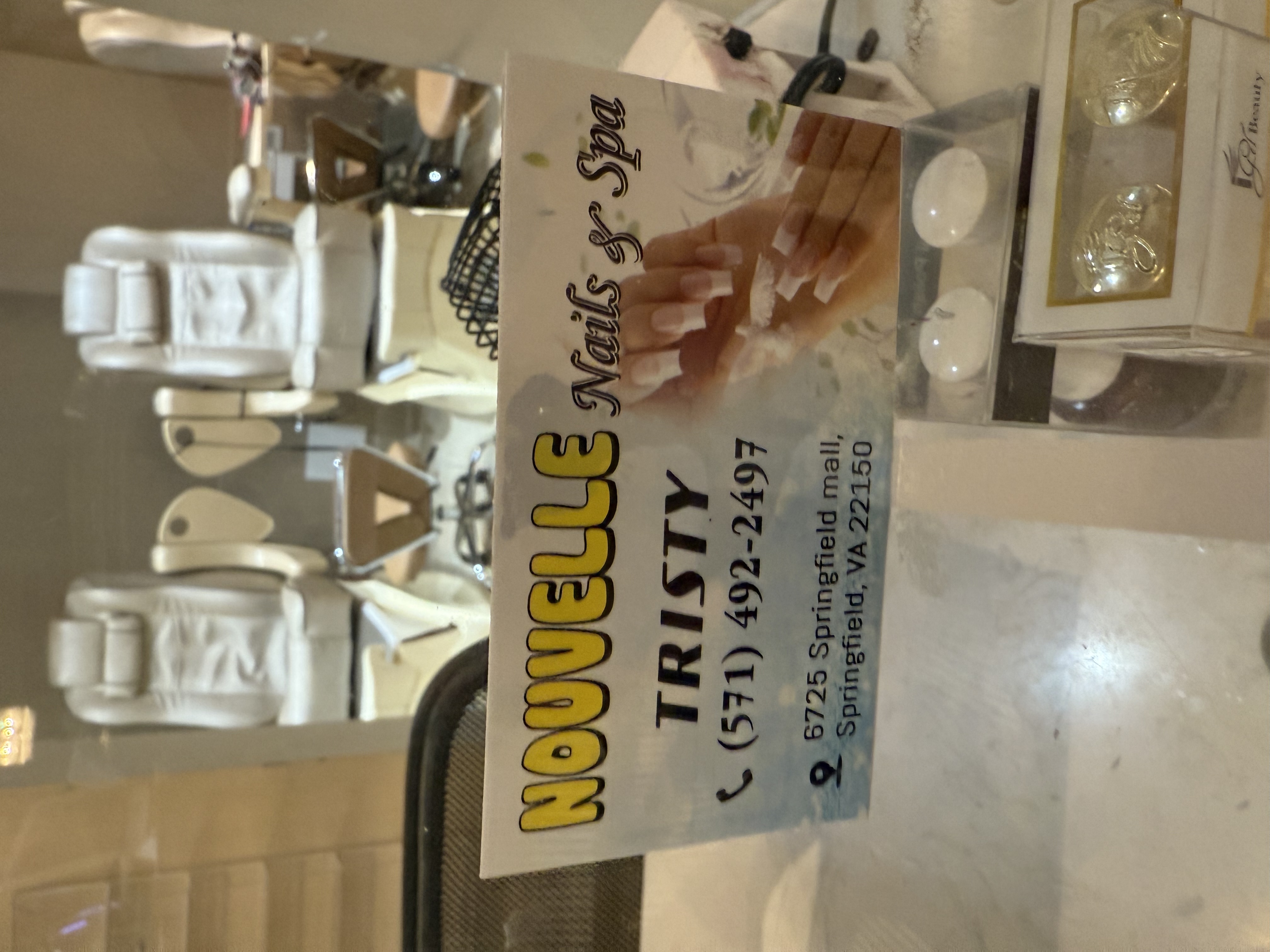 I normally get my nails done in Alexandria, but I was short on time and needed to charge my car. Since I was already at Springfield Town Center, I decided to stop into Nouvelle for a manicure and pedicure while my car charged. Unfortunately, this turned into a huge mistake. Tristy did my services, and from the start, the quality was extremely disappointing. During the pedicure, she painted over my skin and left rough, uneven patches of polish on my toes. Then, during the SNS manicure, she drilled my nails down so much that l... read more