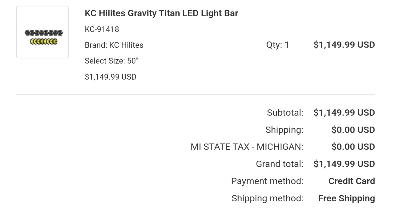 Do not trust Offroad elements. Offroad elements had the 50" gravity titan listed for $1,149.99 and I placed my order and received email stating 50" for that price then they called me the next day and said it was going to be $2,400. And offered me a pathetic 12% off for the trouble. This place is a joke.