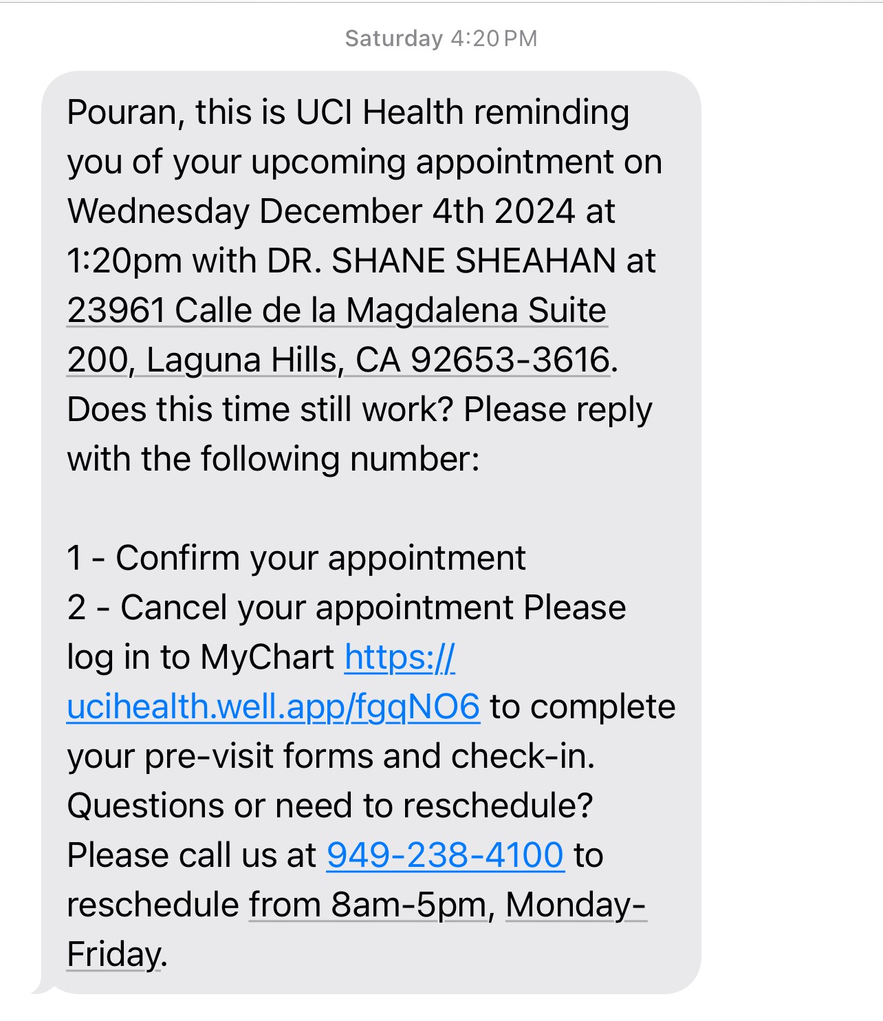 I scheduled an appointment with Dr. Sheahan for my 90-year-old mother for October 30th several months ago. (Since then, the office has rescheduled this appointment due to the doctor being unwell!). We get many texts to confirm the appointment, and then the Dr. gets sick on the day of the appointment! The same thing happened yesterday morning (December 4th)! The doctor is unwell again; therefore, the appointment is canceled! If he's sick, why did they confirm the appointment yesterday and early this morning? They suddenly ca... read more