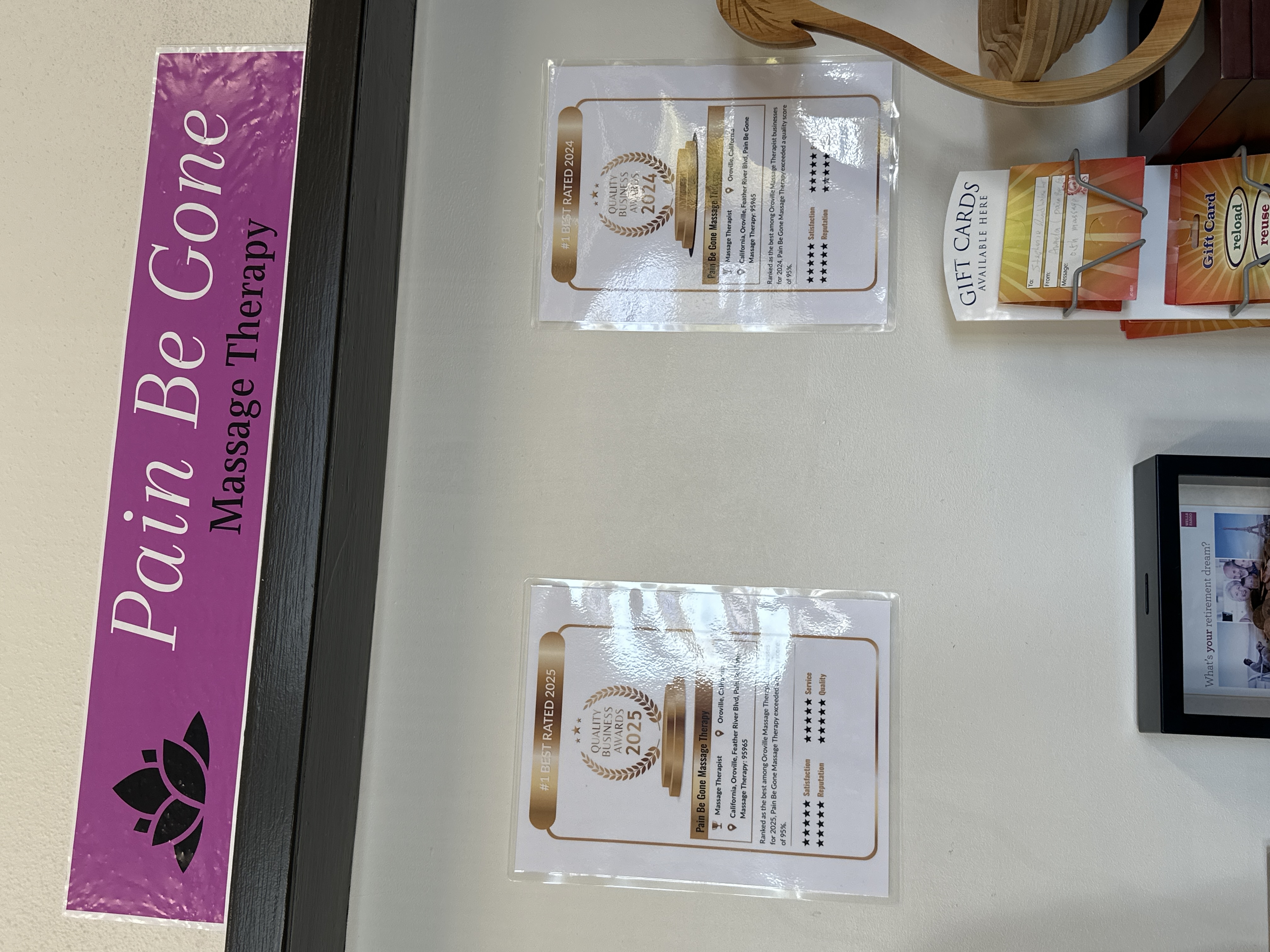 "Pain Be Gone Massage Therapy is truly the best massage therapy center in Oroville! The environment is quiet and clean, and the therapists are very professional. They listened carefully to my needs and provided targeted relief for my long-standing shoulder, neck, and back discomfort. I feel noticeable improvement after each treatment and highly recommend it to anyone who needs relaxation or pain relief!"