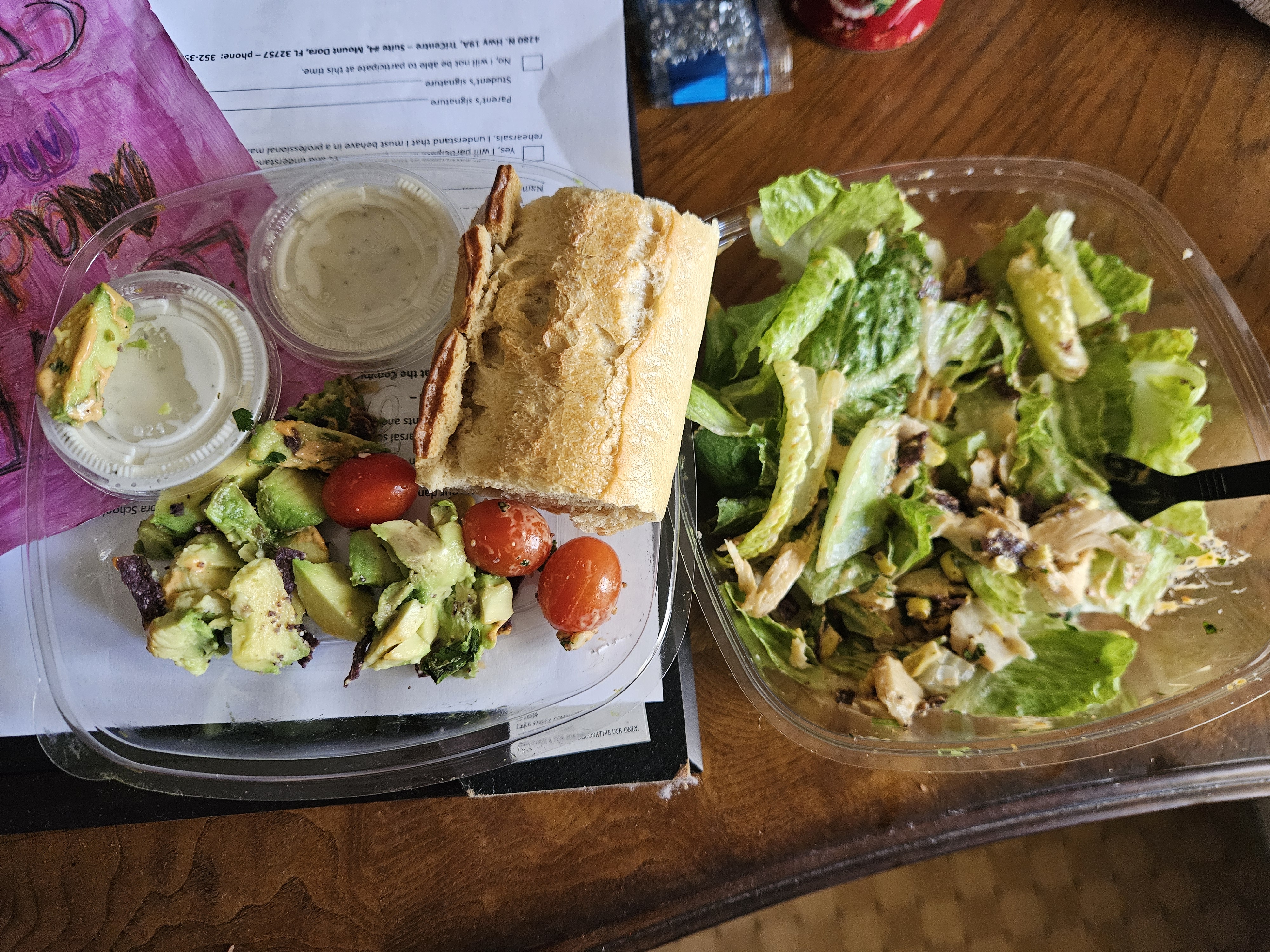I buy the Southwest chicken salad every time I go. No tomato, no avocado no bread I want chips instead. Today somebody was not reading the order correctly.This is what I got. Normally I would give a four star, but today only a three because of the way they messed up my order.