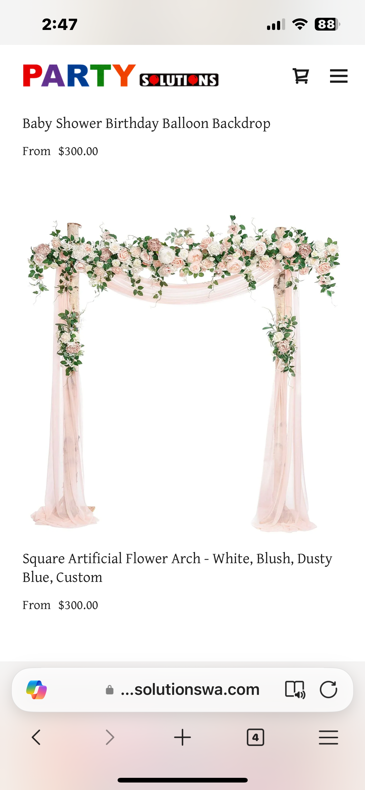 Party Solutions is closed now. It will open on Monday at 10:00 a.m.