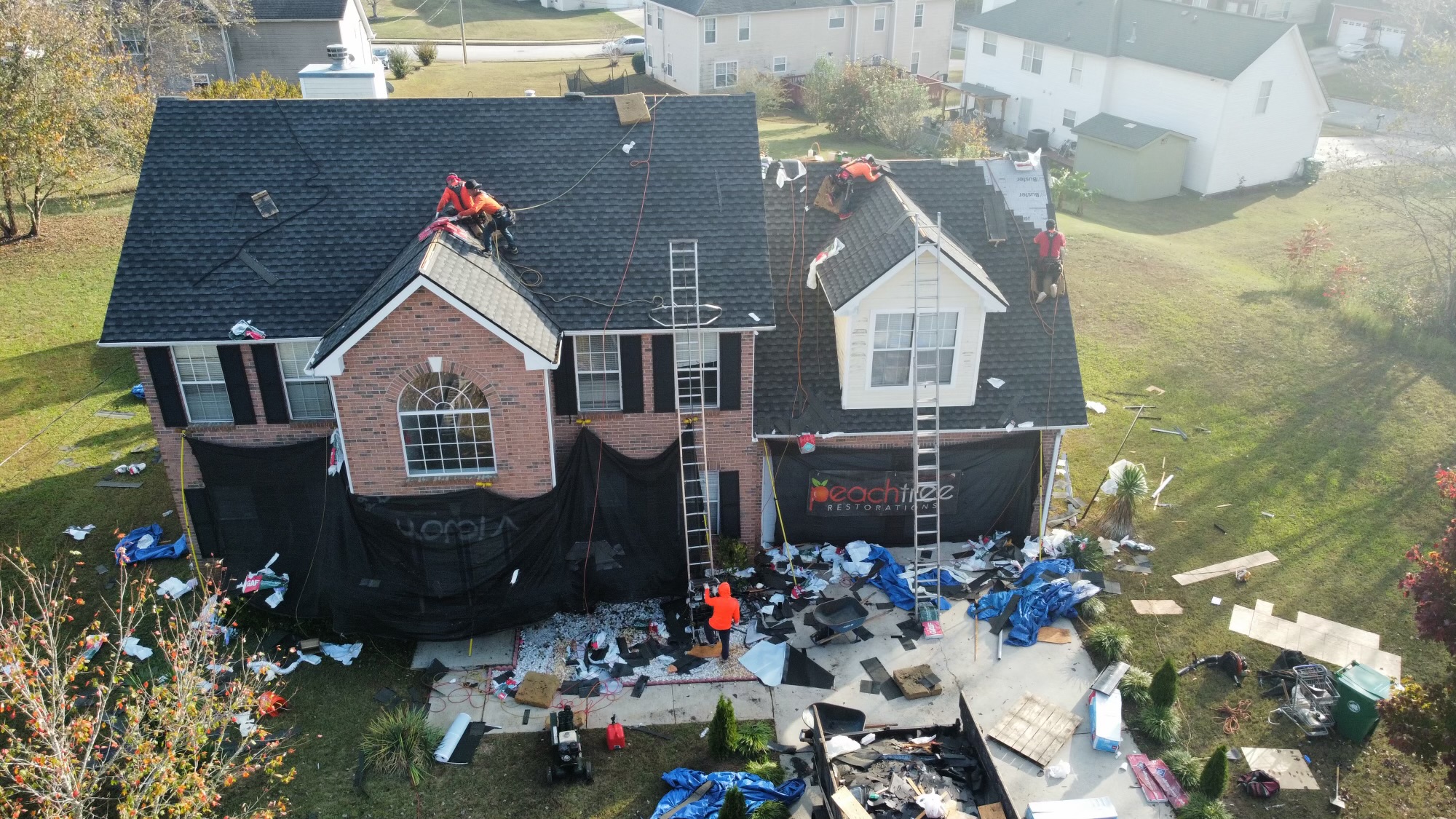 Tim Jones from Peachtree Restorations came out multiple times to review the roof condition and diligently worked with insurance. Thanks to his persistence, we have a new roof now! It will be amiss if I don’t mention the professionalism from the workers. They worked tirelessly and diligently to remove, install and clean up. Pedro the supervisor was onsite the entire time and was very willing to walk us through questions we had. Overall, very pleased!!