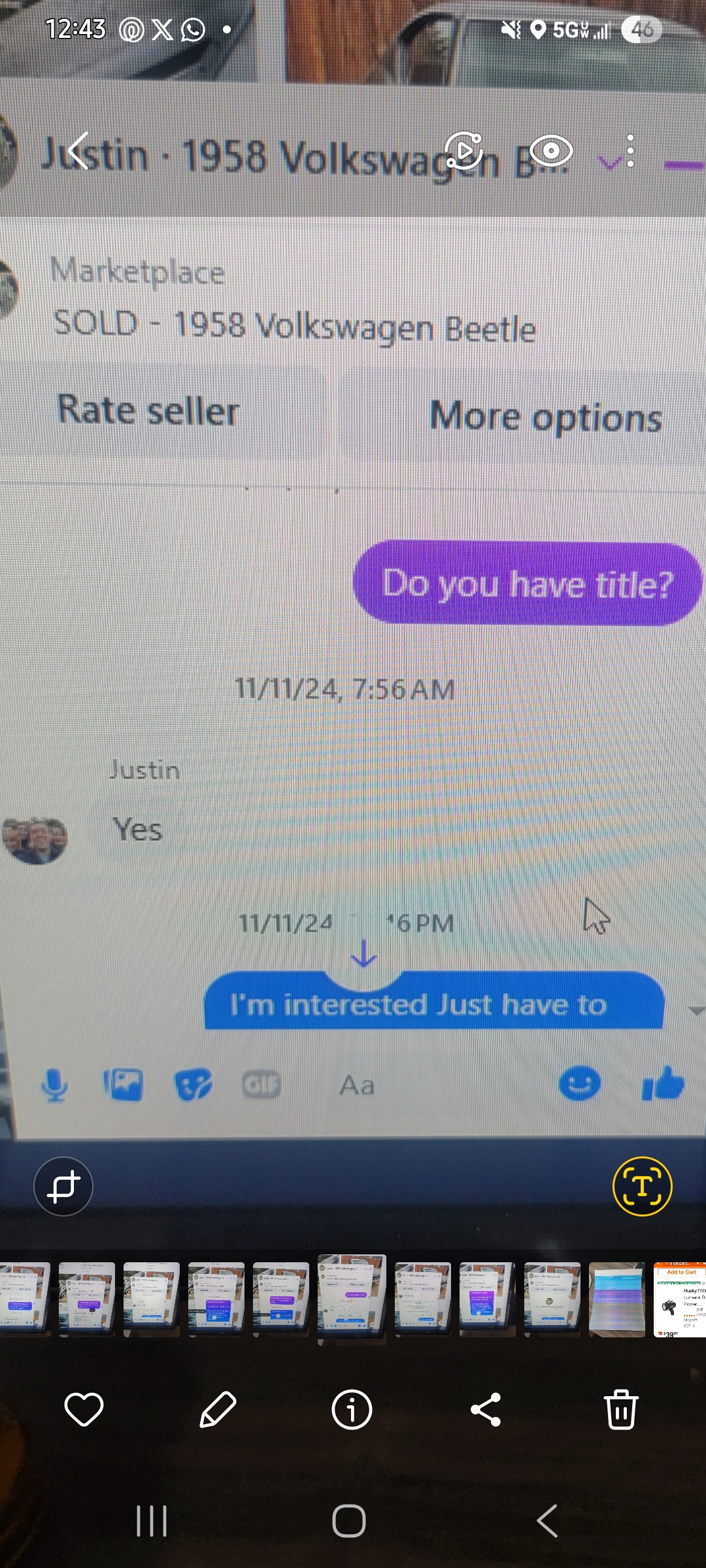 Buyer beware this guy is a scammer, robbed me after I paid in full for this 1958 VW Beetle His business practices are shady. Check the Google reviews for his business. Bought this car last year end of December, after I sent a wire as a deposit for $1000. I drove up to New Hampshire assured that Justin had a title for the car, he told me he had the title. After paying the balance I asked for the title and he gave me 3 stories 1) my wife lost it 2) my wife threw it out 3) my wife ripped it up I gave him the benefit of my doubt... read more