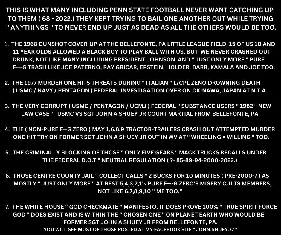Jake Robinson and Robyn Ruttenberg did everything possible to destroy my chance at securing a fair settlement as the ( non-pure zero ) May 1,6,8,9 hero hazardous material tractor-trailer driver out on the Wheeling I-470 bypass with Feb 94 Wheeling jury tampering to go with the murdered off very key witnesses. My guess, that would have been Jake "" Robinson = Robber-son "" and "" Robyn Ruttenberg = Robbing - rutting-berg."" She made sure to create very large "" ruts "" in my lawsuits. It's not my game, all 50 states, State Ba... read more