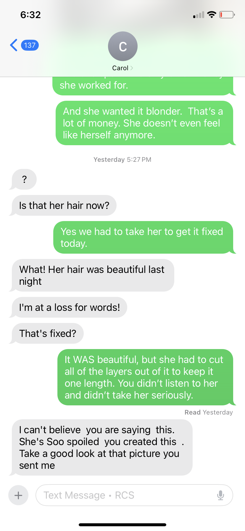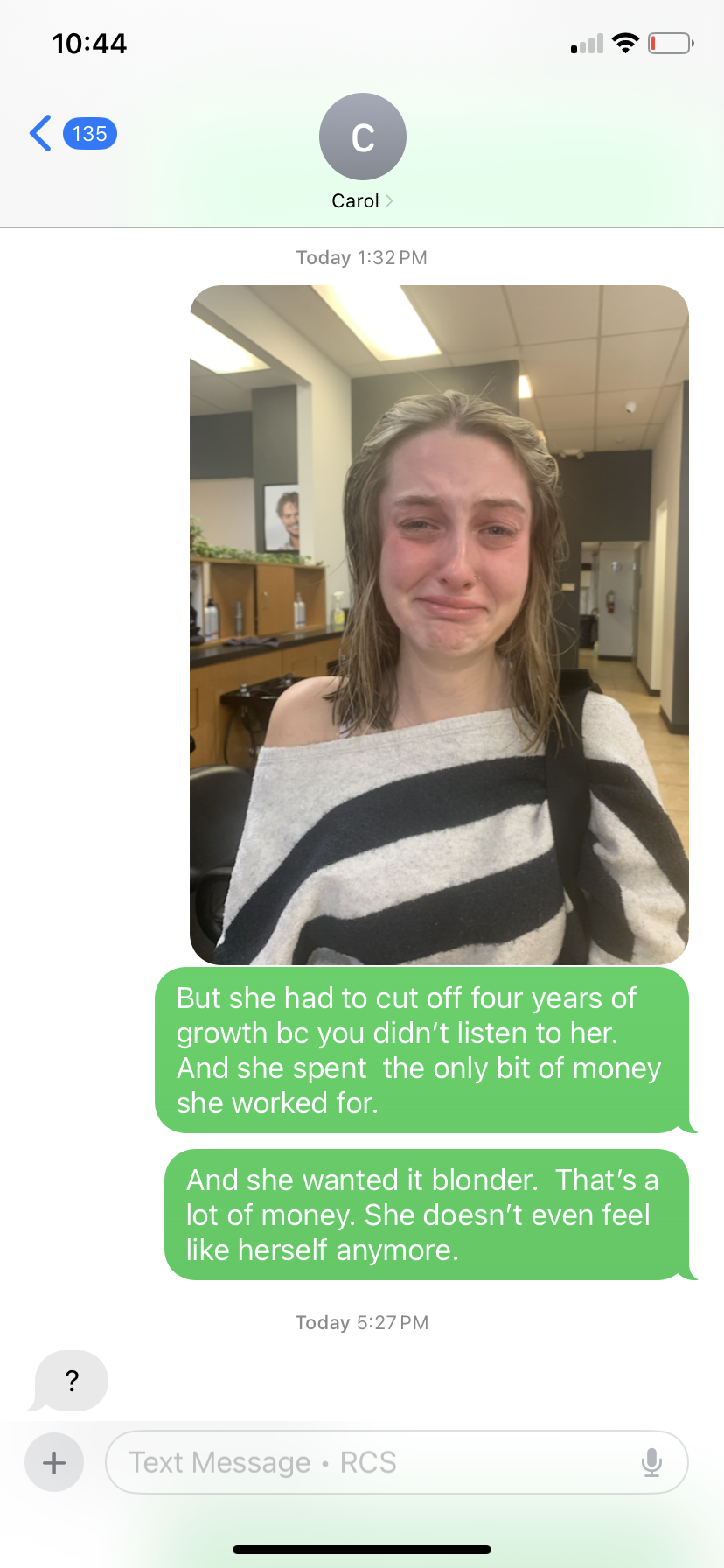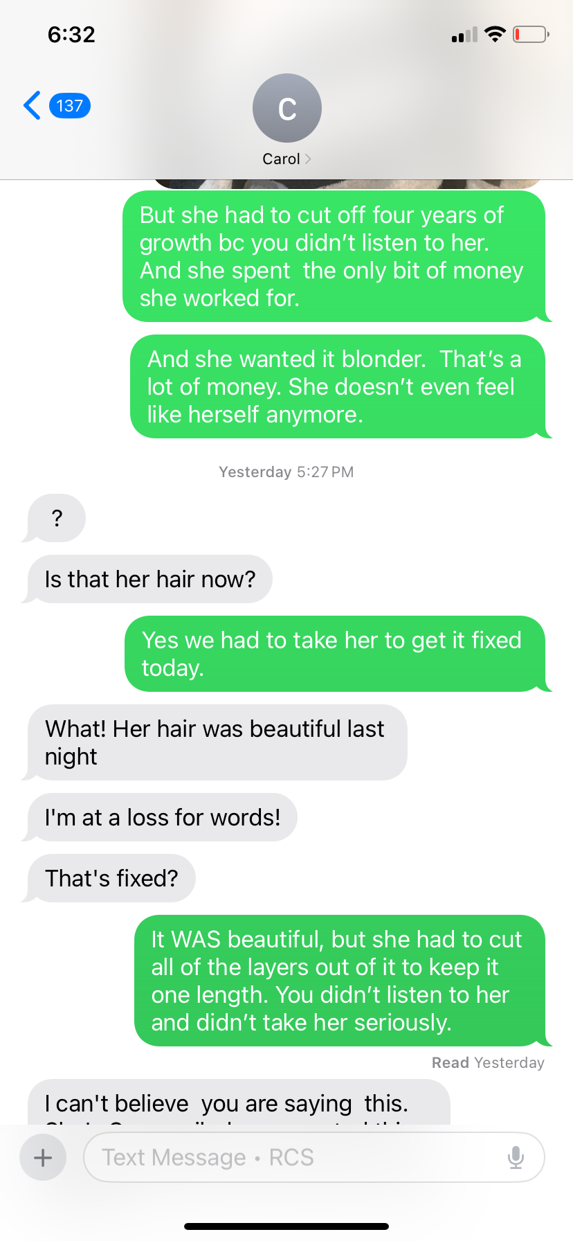 Ok Facebook friends, I’d like to hear from you… Abby and I got our hair done yesterday. She had been growing hers out for four years and it was down to the middle of her back. She was so excited to get heavy highlights. She wanted about 3 inches cut off. When the hairdresser cut it she put layers in it. Abby specifically told her she wanted it all one length. She also told her she wanted a lot of blonde. I’m not trying to act entitled, but our bill between us was $250. (She charged Abby $150). I paid for most of it but Abby ... read more