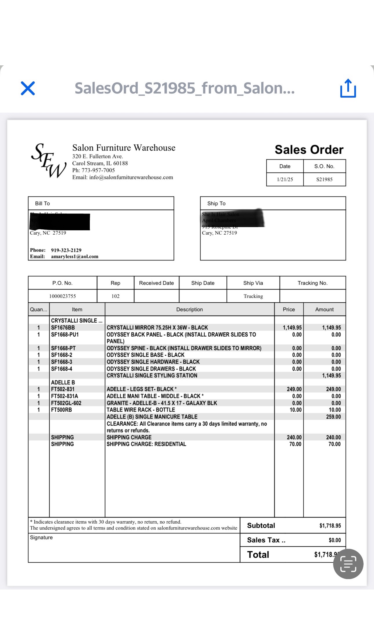 I tried to give Salon furniture warehouse 1 star. But it wont let me. They sent my station with no brackets, and nail table that was raggy. The manager Phat wanted me to pay $150 for a new table top, $85 for some brackets that should have arrived with the furniture. Plus an additional $179 to ship it and send me some glue for me to glue the station will was ridiculous! This was all their fault! After 4 days of going back & forth with Phat they was willing to send a brackets and another table top free, but I still had to pay ... read more