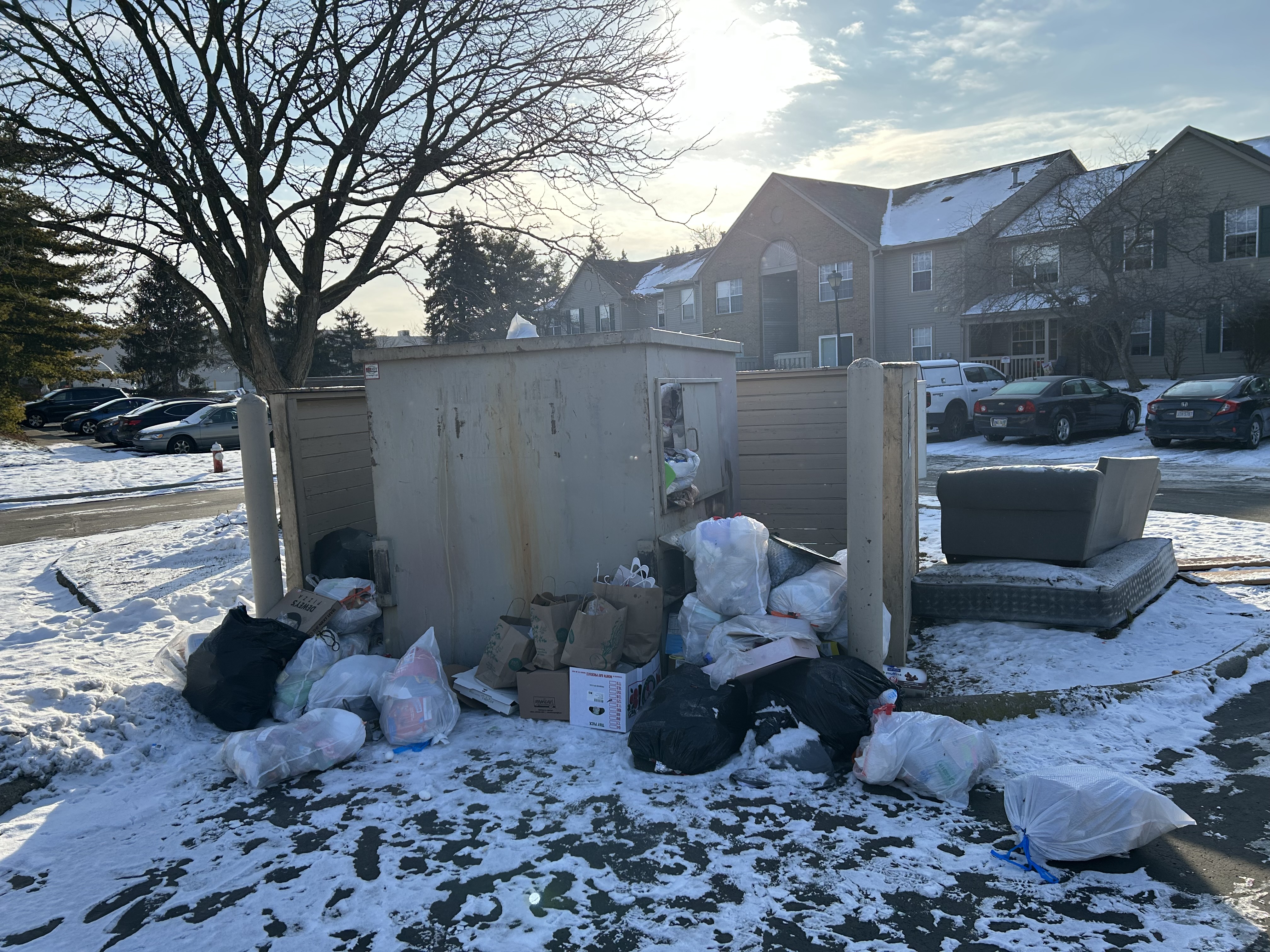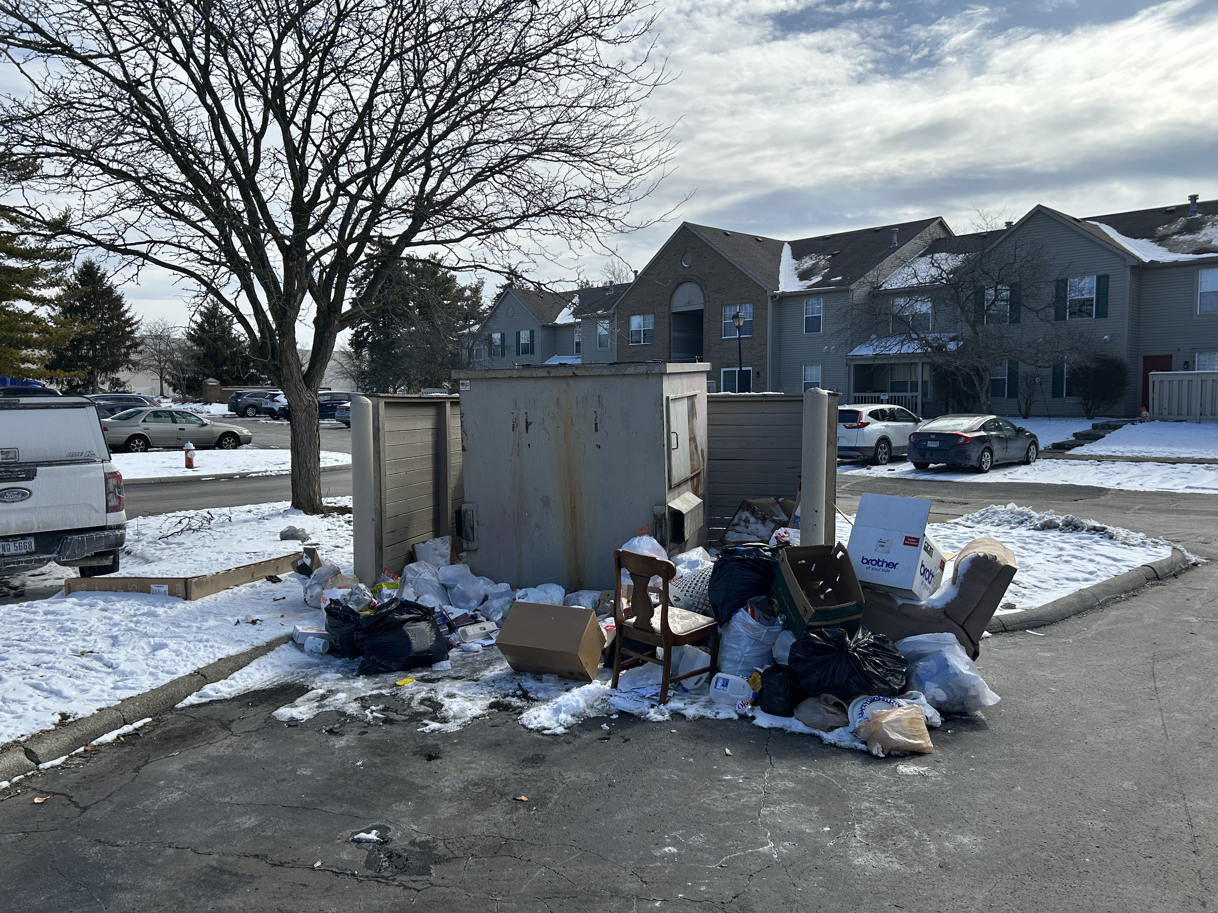 Sawmill Ridge Apartments is a dump! Literally. Allows residents to pile anything and everything by dumpsters. After several requests nothing was done. This was my view outside my apartment. Now they are taking me to collections for a $250 “cleaning fee”! Jokes!