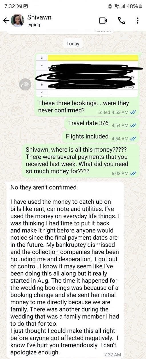 I and many others have had a deeply troubling experience related to this notary. There are serious concerns involving the mishandling of significant client funds—reportedly close to $40,000—from her time connected to a travel agency. She has admitted to stealing from clients. This situation led to the loss of her employment from multiple jobs. I strongly advise doing your own research and exercising caution before engaging her services. Trust and accountability are essential in this line of work, and in my experience she is ... read more