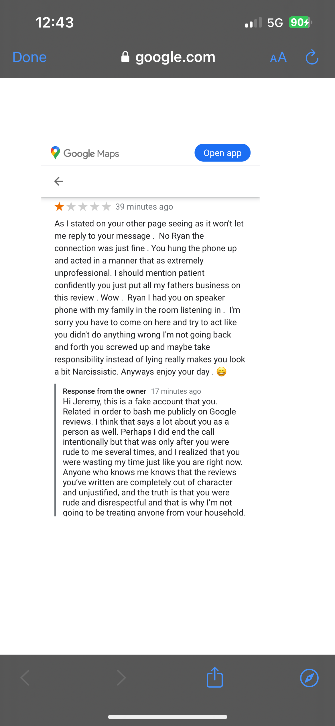I'm sorry Ryan I don't need to make a fake account . This is my husbands account actually I don't have a google one and with his premission I ask him if I could as he was also there while you were on the phone . I'm sorry you have to lie and try to minipulate this issue but you were in the wrong and acted in a way that was extremely hurtful and unprofessional- in my opinion you need some help to understand maybe ? Stop trying to make yourself feel better and there is no bashing here by the way just stating the truth . Peop... read more