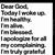 Had a great time at the Dentist. What a surprise, right? Everyone was friendly and nice. I've finally found an office that cares about me. And, they do great work! Thanks!