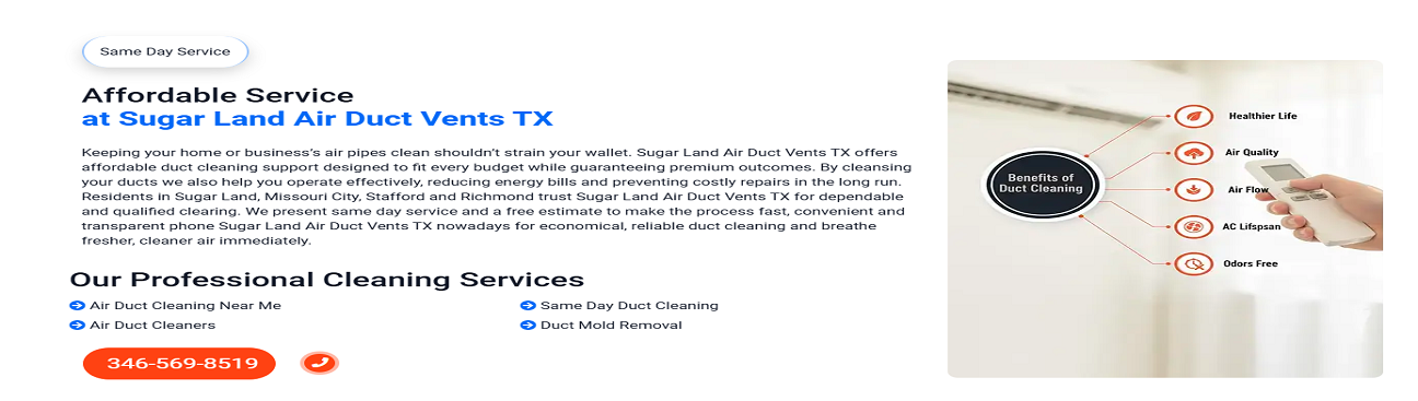 Sugar Land TX Air Duct Vents is open now. It will close at 7:00 p.m.