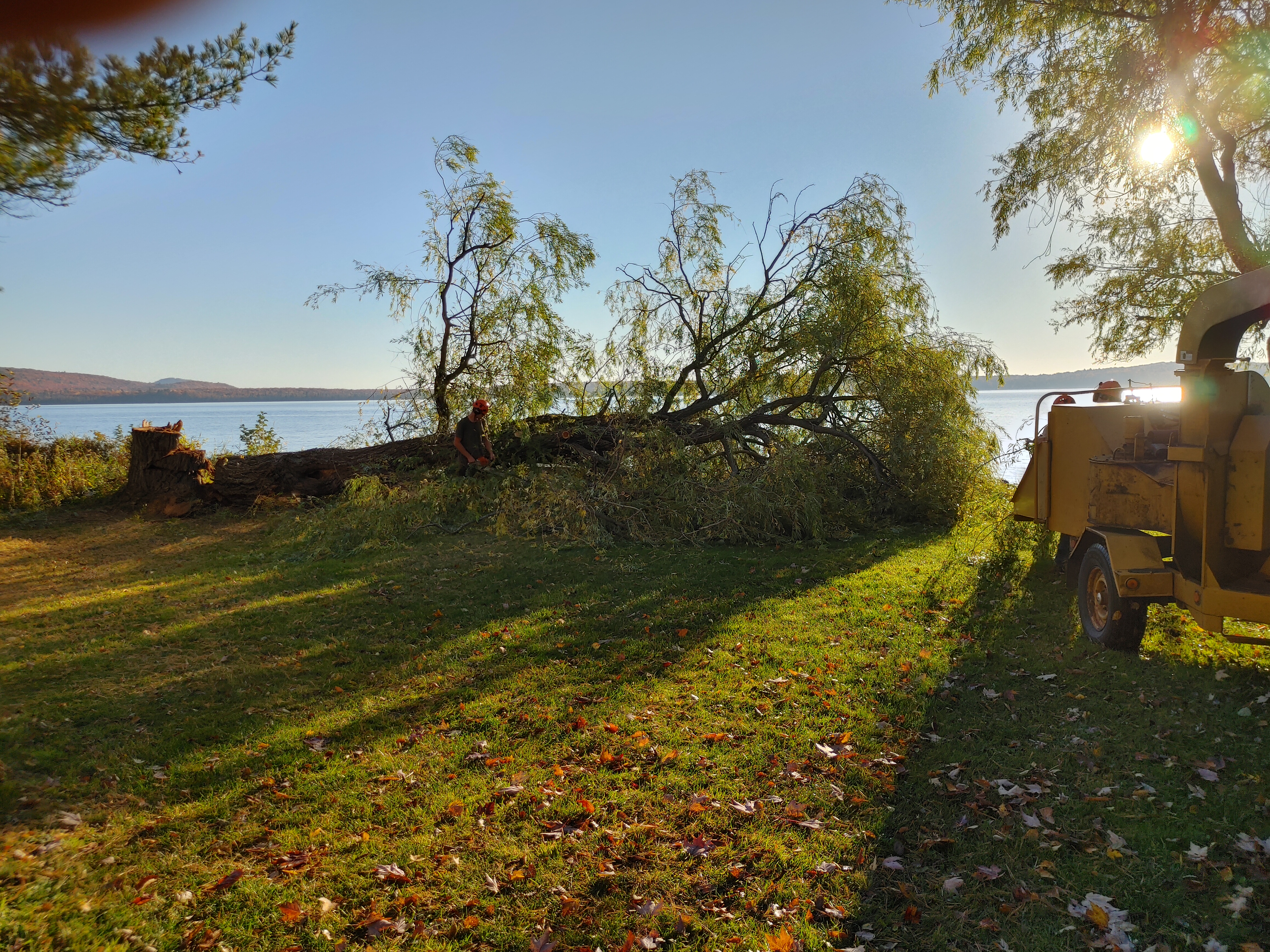 I would recommend Tamarack Tree Service. Tim and crew, sorry I didn't get their names, came and did a wonderful job. They took down a LARGE willow that was rotten in the center and three Poplar, one on the big side. Everything was done and cleaned up in one day. They used a leaf blower and rakes to get all the leaves and twigs removed. Everyone was friendly and courteous. The price for the whole job was very reasonable. Again highly recommend them.