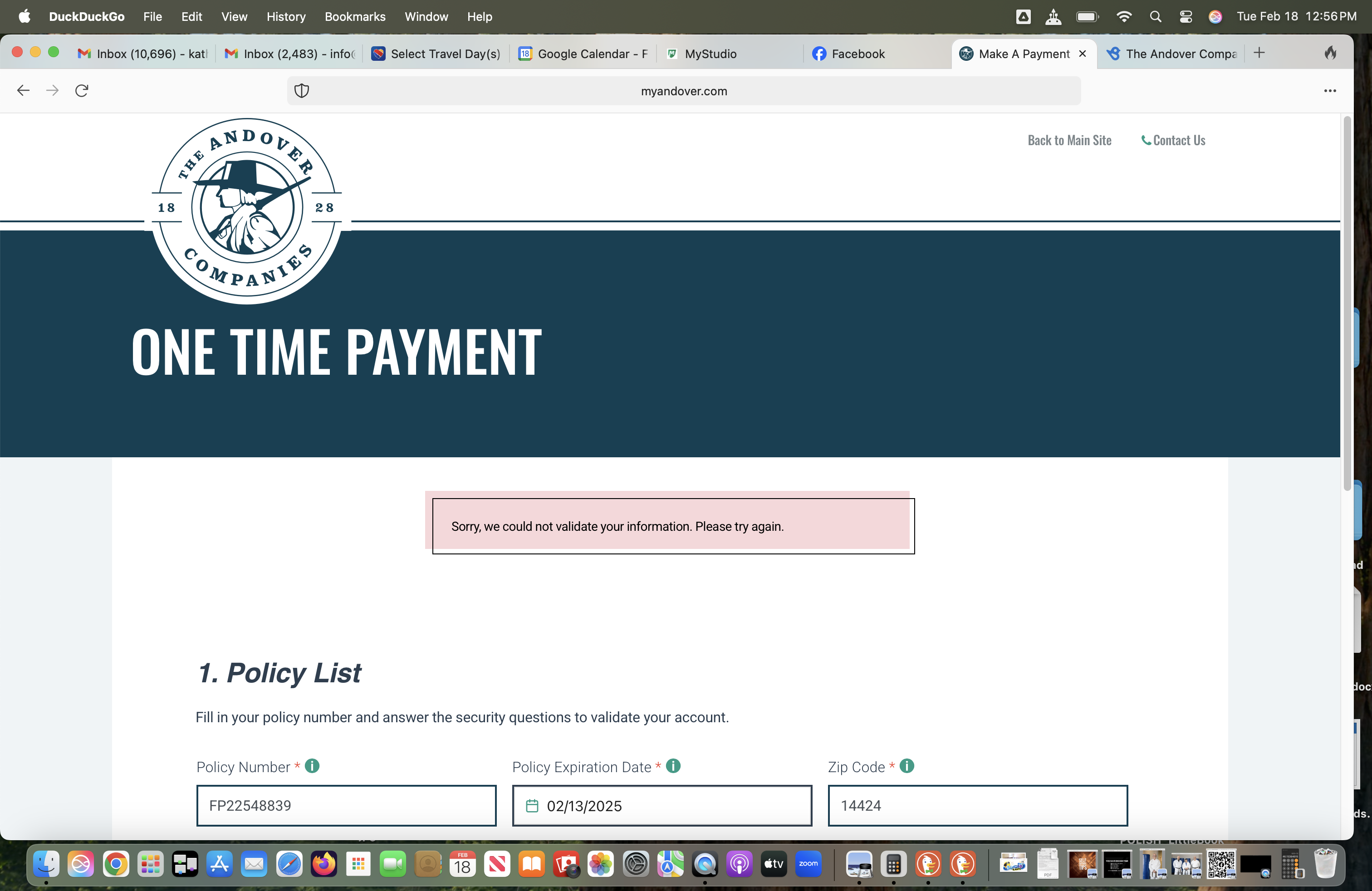 unable after attempting over & over to pay my bill.