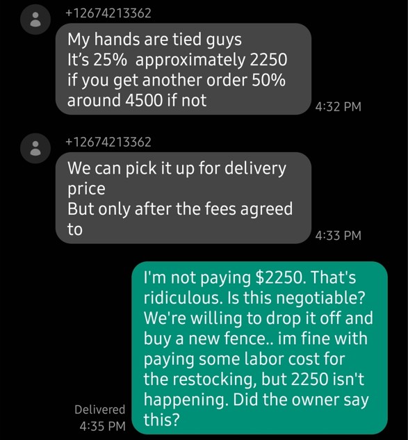 Disappointing Customer Service and Unreasonable Policies My contractor mistakenly ordered the wrong fence from Fence Authority in Malvern. When it was delivered, I immediately noticed it was not the style we had selected. My contractor contacted them, and we were initially told they don’t accept returns, which didn’t sit right with me—so I followed up personally. After some back and forth, I went into the store, worked with their team, and selected a different fence. I was under the impression that they would work with me ... read more