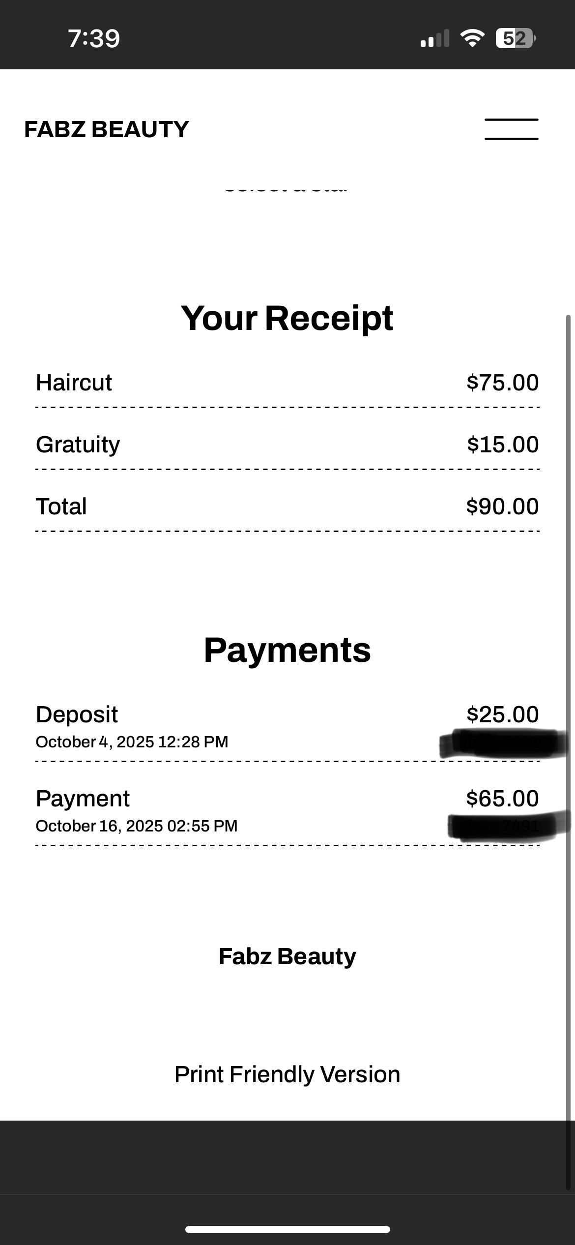 This review is overdue, but I wanted to share my experience. I booked a haircut with Fabi about two weeks in advance. On the day of my appointment, she texted to say her first client was late, which pushed back the rest of the schedule. I live an hour away, so this did affect my plans, but I was looking forward to the cut and decided to proceed. I arrived five minutes before the revised time and noticed she was still coloring another client’s hair. By this point, it was about an hour and fifteen minutes past my original ap... read more