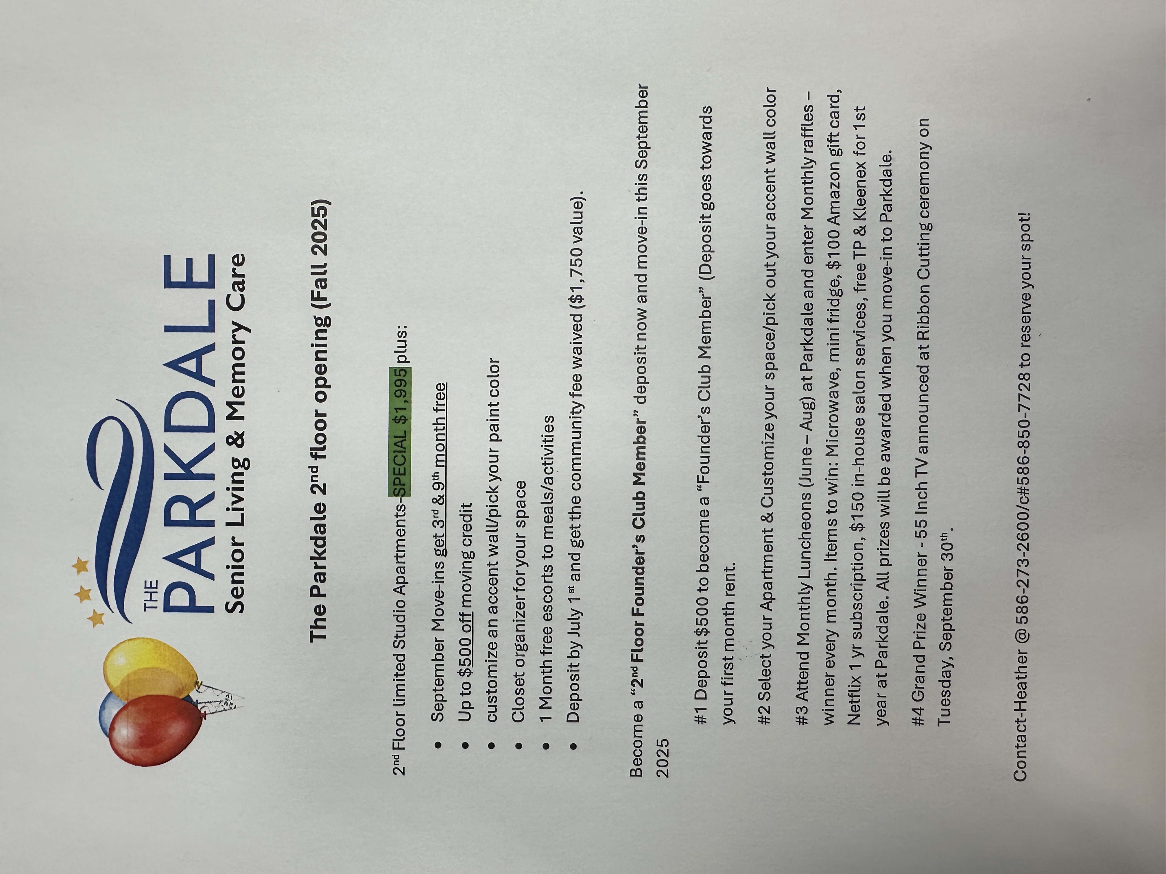 Get directionsCome see why so many seniors choose our community. We offer a full social calendar, restaurant style dining with all of the amenities that make your home special. Call Parkdale at 586-273-2600 and ask for Heather!