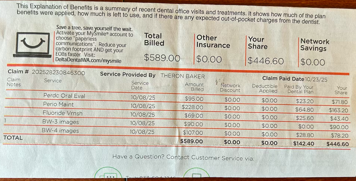 Sad to write this review. I have been a patient with this practice since 1995 (yes, 1995). They provide good care, but their recent change to concierge dental billing is a stunning rip-off. I have great dental insurance (Delta Dental of Washington) through my employer. Last October (2025) I went in for my routine cleaning and yearly X-rays, I was handed a bill for $598! Seattle Dental Associates' fees are so out of line with industry norms that my insurance only covered $142.40 of that total for routine maintenance. A... read more