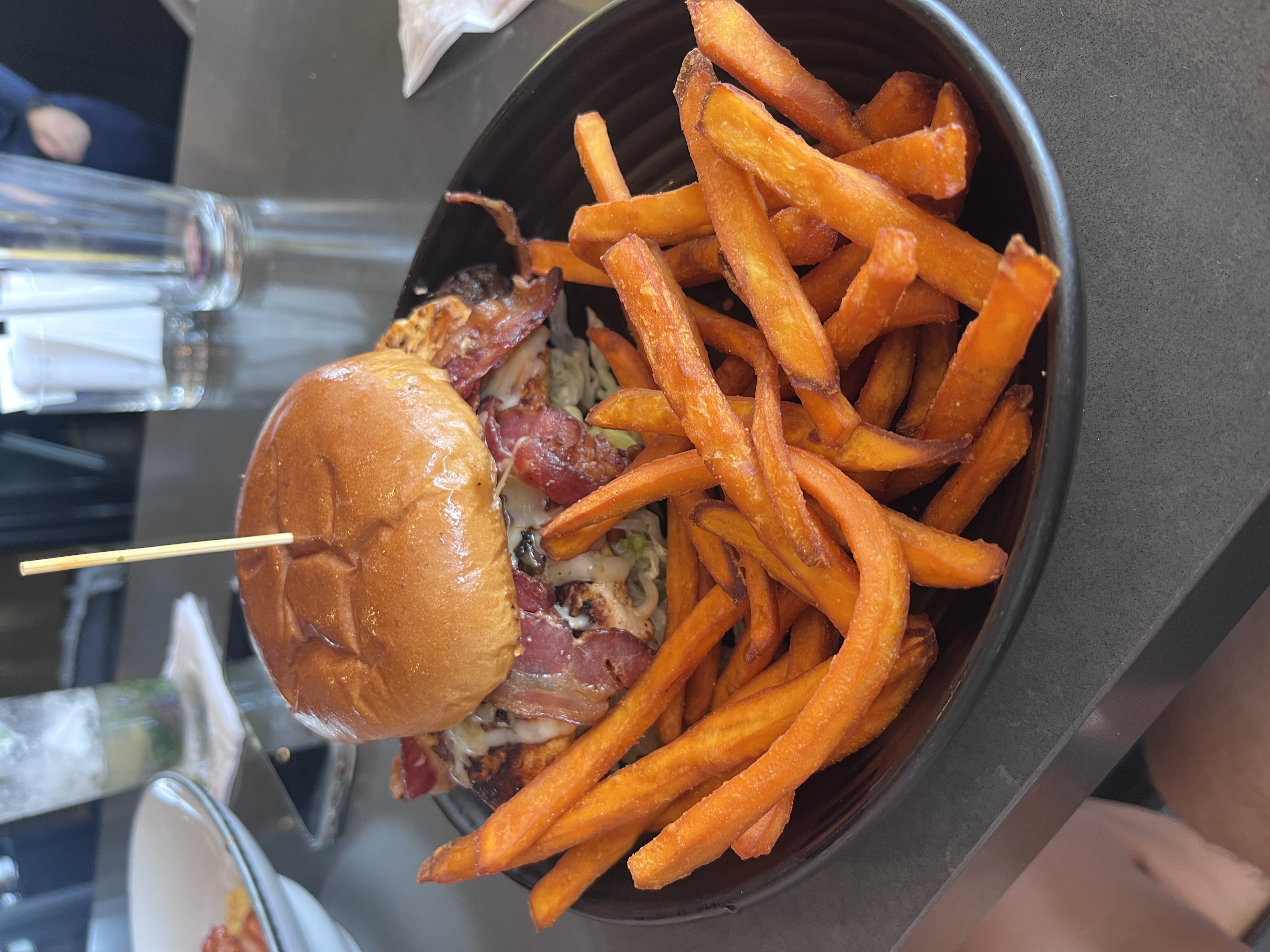 This review is about the service we got from Victoria. She was very nice. She checked on us all the time. Whatever we needed she made sure we had it. Carefully took our orders . Turkey buyers were correct. I finally got bacon after 3 weeks!. But I wasn't charged. The Turkey burgers were very good beans and rice are always good. We go to watch different teams play. So thank you Victoria. We will see you next week.