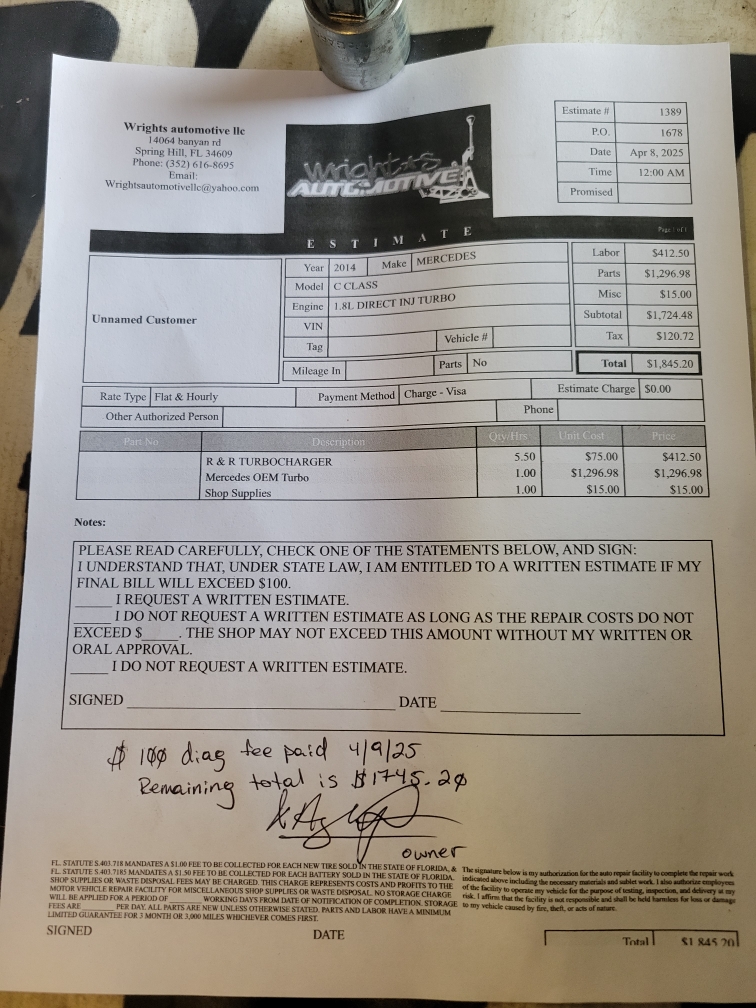 ⭐ SCAM WARNING: Dishonest Owner, Unnecessary Repairs, and Poor Workmanship We rarely leave negative reviews, but we feel obligated to share our experience with Wrights Automotive to help others avoid being taken advantage of. We were referred to Wrights by Express Tires, a shop we've trusted in the past. Based on that referral, we brought in our 2014 Mercedes C250 due to a small oil leak. Wrights diagnosed the issue and initially claimed it was a minor repair. Later, Anthony (the owner) called and said we needed a new tur... read more